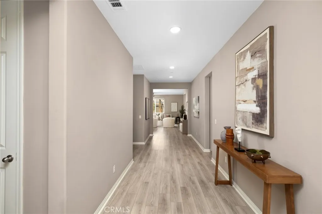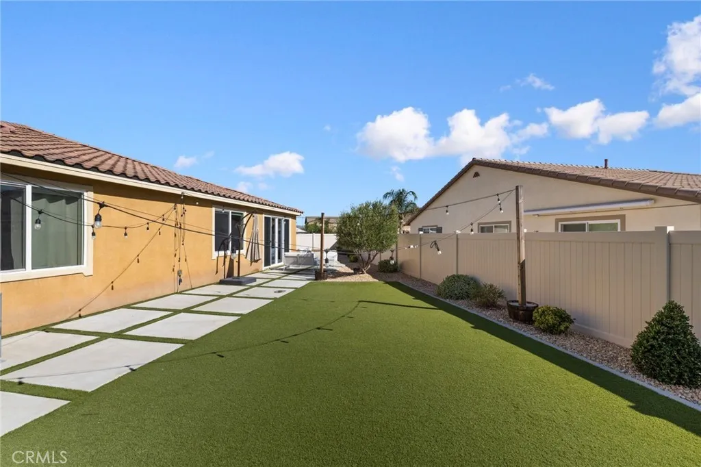 Located in the tranquil and peaceful community of The Ranch, 22677 Riverstone consists of 3 bedrooms, 3 bathrooms, and 2490 of living SF. Built in 2018 and sitting on an expansive lot of 7,871SF, this home is ideal for all types of buyers. Upon entering the home, guests will be greeted with a long elegant hallway, high ceilings, and upgraded flooring. A thoughtfully designed floor plan that consists of 2 large bedrooms that share a jack and jill bathroom ideal for a growing family or multi generational living. Transitioning down the foyer, a flex space can be utilized as an office, formal living room or dining room. The highlight of the home is the expansive open concept great/family room and kitchen that is well suited for hosting large gatherings and creating fond memories. The kitchen compromises of stainless steel appliances, designer grade counter tops, espresso cabinets that compliments the large island. The open flow seamlessly connects the kitchen to the adjacent dining area, making it ideal for daily living and entertaining. Retreat to the spacious primary suite designed for comfort and relaxation. The en suite bathroom offers dual vanities, a soaking tub, walk in shower, and is connected to a walk in closet. Thoughtful and countless upgrades have been done in and outside of the home. Lastly, enjoy a private, low-maintenance backyard designed for both relaxation and entertaining. Featuring a spacious artificial turf lawn, modern concrete stepping pads, and charming string lighting, this outdoor space is perfect for gatherings or quiet evenings at home. The fully fe