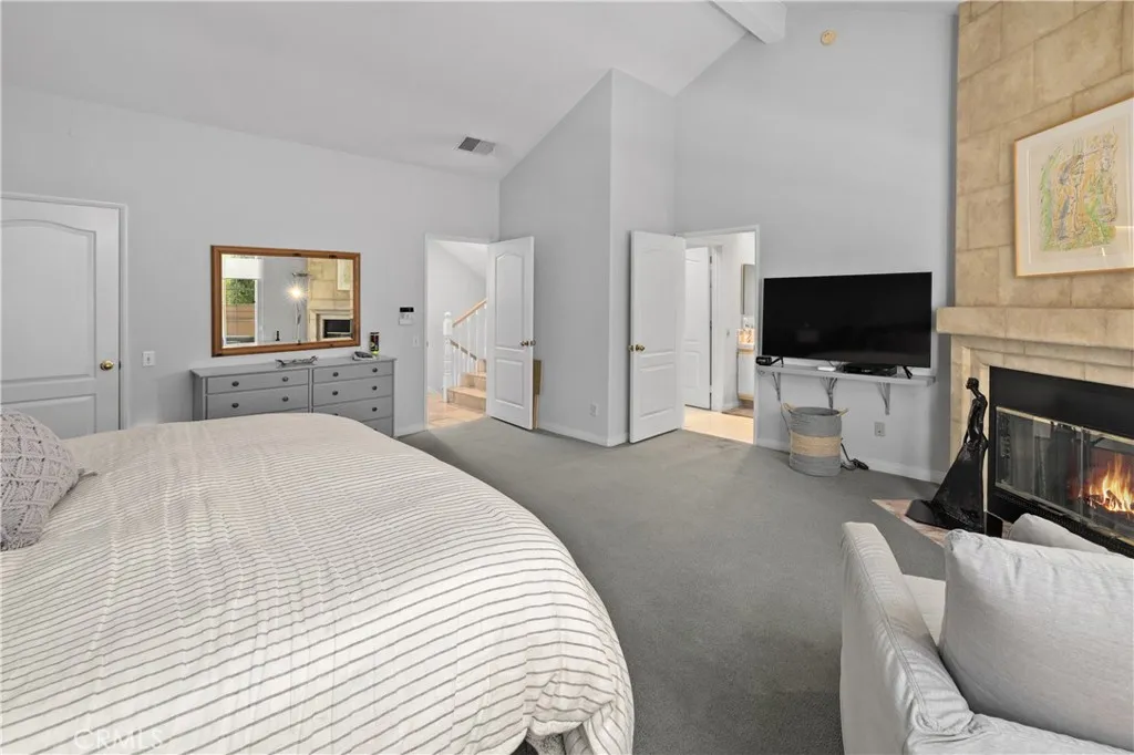 Welcome home to this beautifully designed three-bedroom, three-bath townhome offering just under 1,800 sq ft of bright and spacious living. Designed for everyday comfort and easy living. This home is filled with elegant details and modern conveniences. Upstairs, youll find all three bedrooms with soaring ceilings, lots of closet space and private balconies. Upstairs second Full bathrooms and dual-sinks. The primary suite is a true retreat with vaulted ceilings, large walk-in closet, spa-like en-suite bath, and its very own cozy fireplaceperfect for curling up with a good book. For added convenience, the upstairs laundry room offers plenty of storage space and keeps everything close to the bedrooms. The main living areas are equally impressive. A dramatic atrium floods the home with natural light, while the living room boasts a fireplace, wet bar, and direct access to a large private patio. The formal dining area features a coffered ceiling, and the chefs kitchen offers a granite island, dual ovens, abundant cabinetry, and direct garage access for ease when carrying in packages. Additional highlights include recessed lighting and a spectacular roof deck patio for enjoying sunny afternoons or evening gatherings. The attached two-car garage with gated driveway entry provides both security and functionalityplus a safe space for kids to bike, skate, or play. As part of this welcoming community, youll enjoy access to a sparkling pool and jacuzzi. With nearby parks, restaurants, shops, places of worship, the Orange Line station, and easy freeway access, this home is perfectly situ