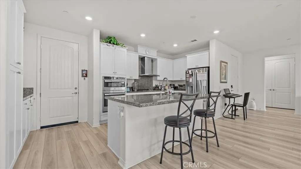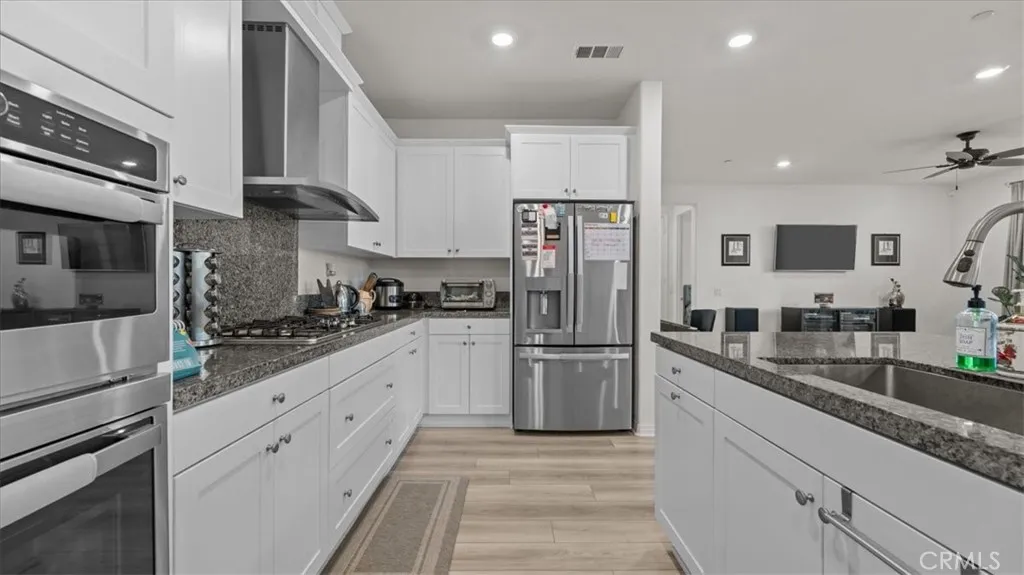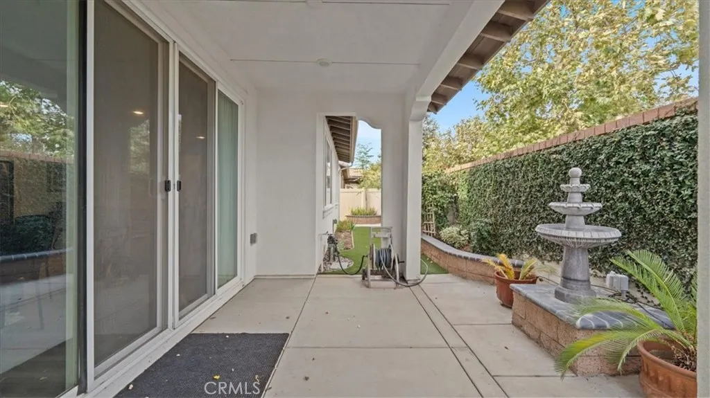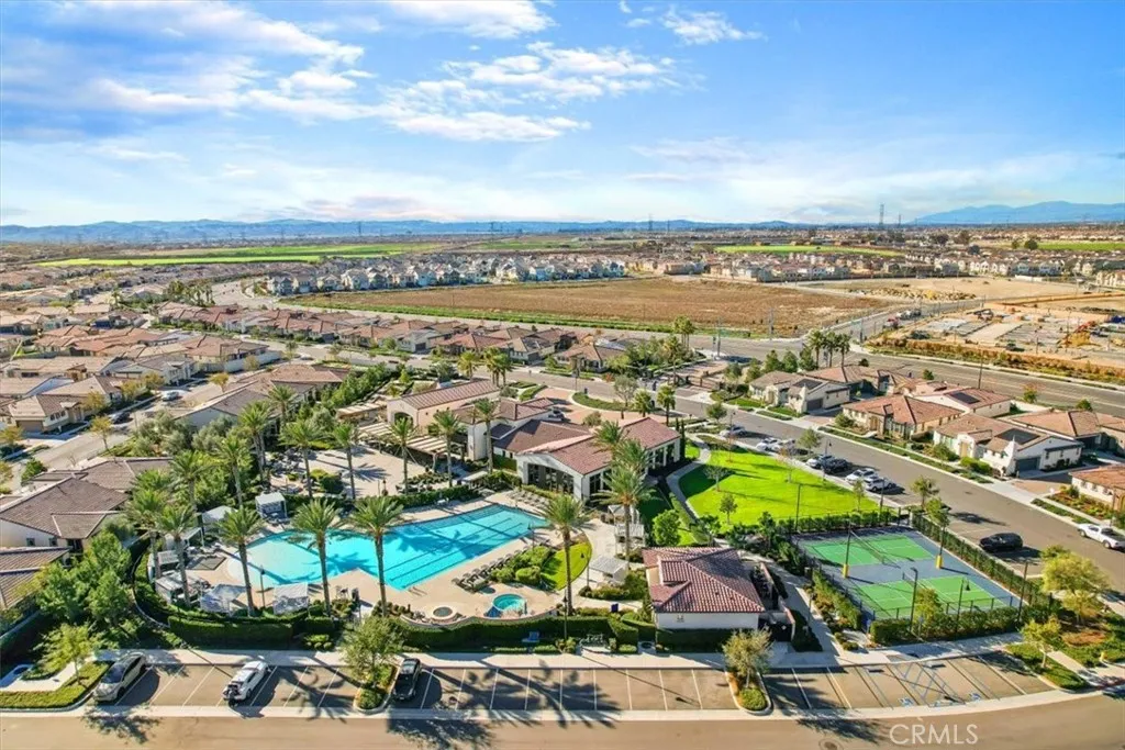 Absolutely gorgeous Spanish Monterey Ranch style home located in the highly sought after 55+ Active Adult Community of Esperanza, a gated masterplan community in Ontario Ranch. TURN-KEY & smart home equipped, this beautiful single-story home built in 2021 features many upgrades, including luxury vinyl plank flooring, tankless water heater, Ring Doorbell, solar panels & much more. Step inside its open floorpan that leads to its gourmet kitchen, formal living & dining rooms with wall to wall windows on its east side, perfect for watching the sunrise. Kitchen includes upgraded granite countertops, stainless steel appliances, kitchen island & for easy access, pull out receptacles. Well lit with recessed lighting throughout as well as dual pane windows & upgraded center-meeting sliding doors that invite plenty of natural light thru the dining room which opens to the well designed backyard that needs minimal upkeep being fully paved complete with artificial turf along with planters for gardening. Enjoy your morning coffee under the covered porch similar to a California Room offering a seamless outdoor & indoor living space. Equally well lit, enjoy the master bedroom with an en-suite, master bath perfect with dual vanities, walk in shower. Adjacent to the master is a separate laundry room for added convenience plus additional bedroom & hallway bath similarly upgraded. Park in the 3-bay garage with plenty of additional street & community parking plus wider driveway entry that leads to its lot premium location with no rear neighbors along its main backyard offering more privacy & op