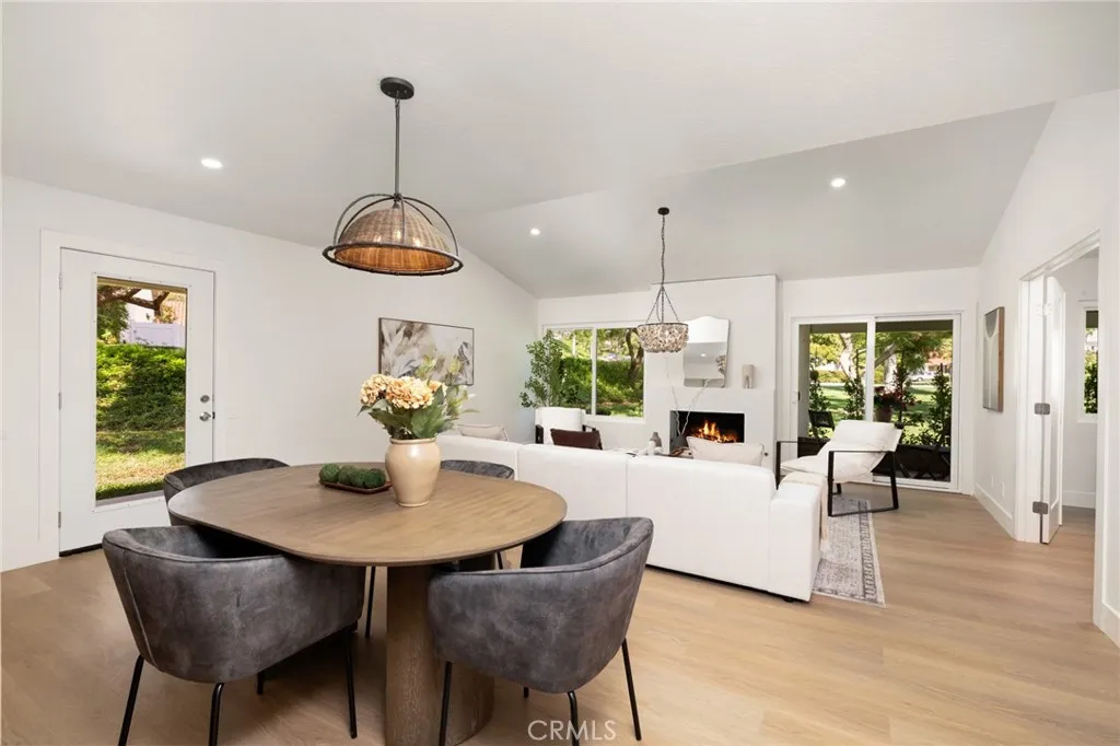 This one-of-a-kind home shines with sophistication, quality workmanship, and timeless character. Every inch has been thoughtfully redesigned with professional designer finishes, creating a residence that feels both fresh and refined. Located at the end of a cul-de-sac, the property sits alone with no neighbors on either side and opens to a wide greenbelt. Two covered patios extend the living space outdoors, perfect for relaxing or entertaining. Inside, the home radiates elegance with new double-pane windows and sliders that fill the rooms with natural light. Fresh designer paint and premium vinyl plank flooring create a warm, welcoming backdrop. Every finishfrom fixtures to cabinetry to lightingwas hand-selected by a professional designer to balance modern comfort with old-world European charm. The laundry has been relocated indoors for added convenience, blending functionality with style. The chef-inspired kitchen is a true showpiece, featuring crisp shaker cabinetry, a quartz marble island, and striking designer light fixtures. The living room, centered around a stucco fireplace, is highlighted by a hand-picked shell chandelier, bringing artistry and sophistication. The primary suite offers a spa-like retreat with natural stone flooring and an oversized walk-in shower. Throughout the home, thoughtful design and character details elevate the living experience, making it both sophisticated and comfortable. Recent upgrades and highlights include: Covered patios on both sides of the home, new double-pane windows and sliders, fresh paint and new premium flooring, newer furnace
