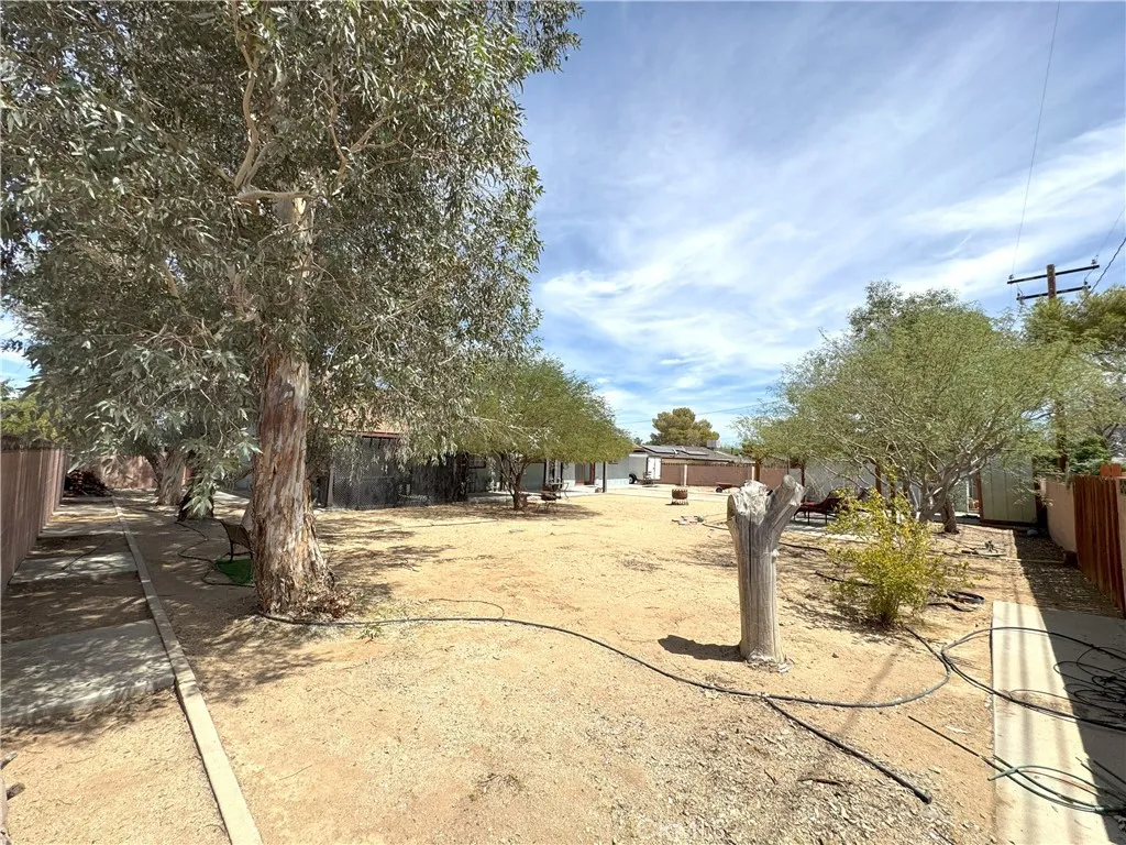 Spacious single-story home in Ridgecrest offering solar power, a large lot, and versatile indoor and outdoor living. This 3-bedroom, 2-bath residence blends comfort with functionality, featuring open living areas, updated finishes, and abundant storage throughout. The kitchen is the centerpiece of the home, offering a central island, extensive cabinet space, a modern backsplash, and stainless steel appliances. A walk-in pantry provides exceptional storage, making meal preparation and organization effortless. Multiple living and dining areas flow together with bright natural light, updated flooring, and ceiling fans for year-round comfort. Each bedroom is designed for flexibility, with ample closet space and generous layouts. The bathrooms are updated with clean finishes, including tile surrounds and modern vanities. A bonus room adds additional value, offering space for a home office, hobby room, or workshop. The oversized garage includes shelving and room for vehicles, projects, or additional storage. A laundry room with built-ins makes everyday living efficient and convenient. Outdoor spaces are designed for enjoyment and practicality. The expansive covered patio extends the living area outdoors, perfect for gatherings, BBQs, or relaxing in the shade. The backyard offers mature trees, privacy fencing, and room for gardening, pets, or recreation. A detached bonus structure provides additional options for storage, hobbies, or workspace. Gated side access accommodates extra parking or recreational vehicles. Located in a quiet Ridgecrest neighborhood, this property combines e
