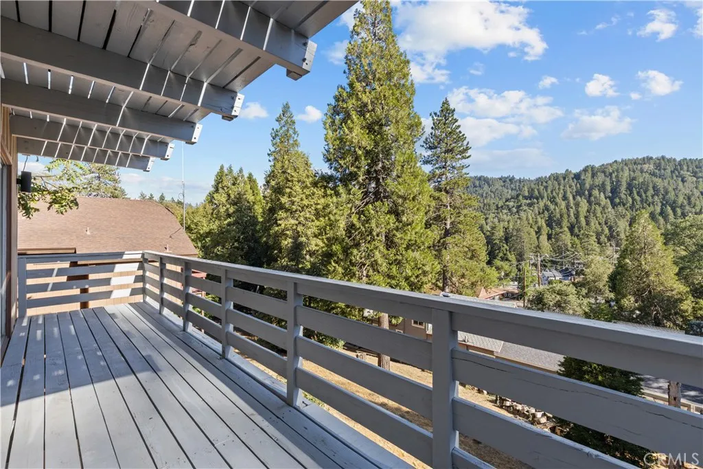 Escape to this inviting mountain cabin, perfectly tucked away in the trees. With a level entry and a desirable orientation with a downtown Crestline view that brings in natural light throughout the day, the open floor plan showcases exposed beam ceilings and expansive picture windows that frame peaceful pine views. The main level flows seamlessly with a spacious kitchen, dining area, and cozy living room anchored by a wood burning fireplace. Upstairs, a loft provides extra sleeping space with a closet, while the lower level features a private primary suite with a full size bath and a family room for relaxing or entertaining. Step outside to two decks that are perfect for morning coffee or evening sunsets. A hidden hatch leads to the laundry area beneath the home, keeping chores discreet and out of the way. Pride of ownership is evident throughout. With fruit trees on the property and just minutes from Lake Gregory, this home offers the perfect blend of comfort, privacy, and convenience, whether you are planning weekend getaways or full time mountain living. Set your move-in style: purchase the home furnished or bring your own.. furnishings are negotiable.