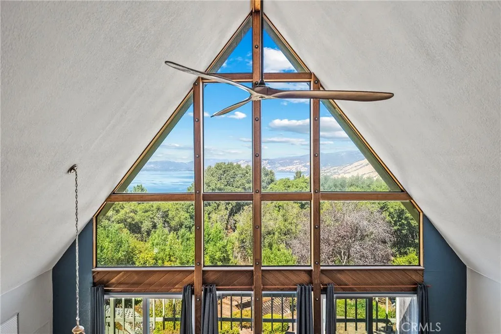Beautiful A frame lakeview home in Riviera Heights. Open living room and kitchen area with amazing views of the lake from downstairs as well as the upstairs loft style bedroom. The tall lake facing windows maximize the natural light for a large, open, and airy feeling. There are 2 bedrooms and bath downstairs with a large soaking tub, and another bedroom and bath upstairs with an amazing view of the lake, making this home perfect for all types of living/vacation home situations. The kitchen features newer stainless appliances along with a large pantry. There is a wood burning stove that heats the entire home during the winter months, saving money on utilities, as well as a brand new central heat and air unit and 3 year old roof. The spiral staircase leading from the lower deck to the upper deck area adds to the outside charm. This home is truly turn key and ready for new owners. Come take a look and see for yourself, it will not disappoint!!