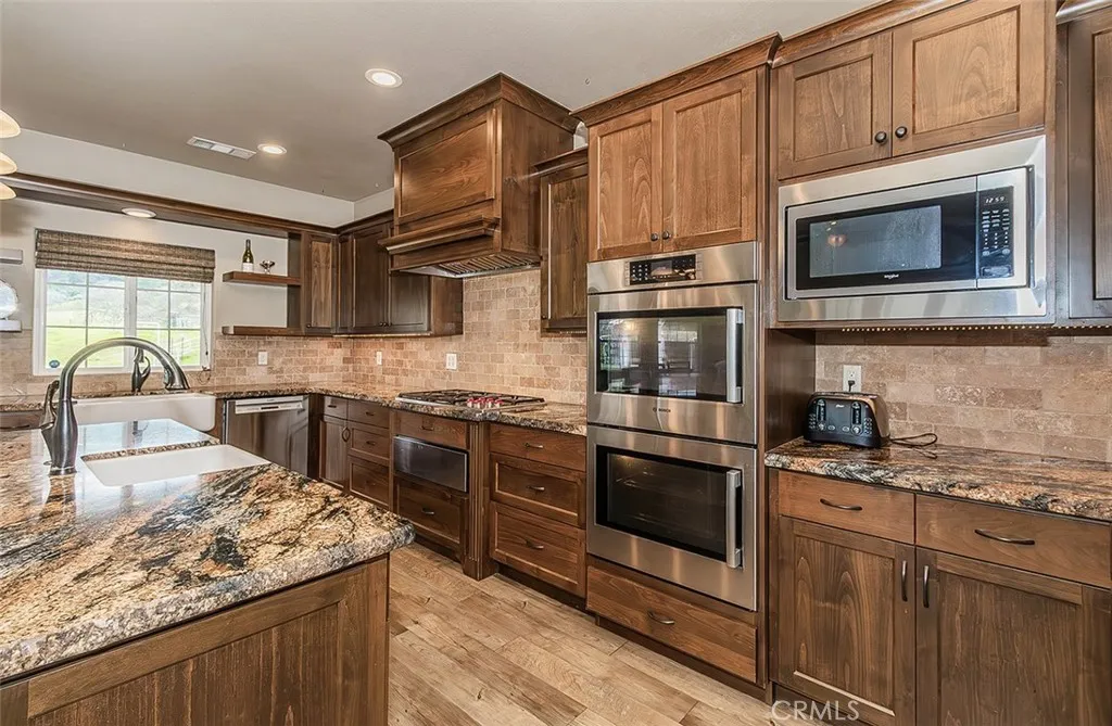 Nestled on 40 acres of picturesque land with sweeping views of the foothills and rolling pastures, this exceptional 5-bedroom, 4.25-bathroom home offers luxury and versatility. The expansive property includes a greenhouse, swing set, firepit, fruit trees, storage containers, a carport/workshop, and is thoughtfully parceled for animal use. The outdoor area is designed for relaxation and entertainment, featuring a pool, spa, and BBQ area perfect for hosting gatherings or enjoying tranquil evenings. Downstairs, this extraordinary home has 3 bedrooms-one which includes a kitchenette, 2.25 bathrooms-one with easy pool access, a laundry room, and 3 bonus spaces with potential for an ADU. Upstairs includes a master suite and an additional bedroom with a full bathroom and balcony. The expansive master suite features two large walk-in closets, a coffee/wet bar, and an attached balcony overlooking the serene landscape. An adjacent bonus space provides options for an office, gym, nursery, or hobby room. Upon entering the home, you will find a stunning family area with large living room, dining room, and kitchen. The chef's kitchen boasts a large pantry and an additional utility room, providing abundant storage and workspace for culinary endeavors. This unique home seamlessly blends luxury living with functional spaces, all set against the backdrop of natural beauty. Whether you're seeking a private retreat or a versatile family estate, this property offers endless possibilities.