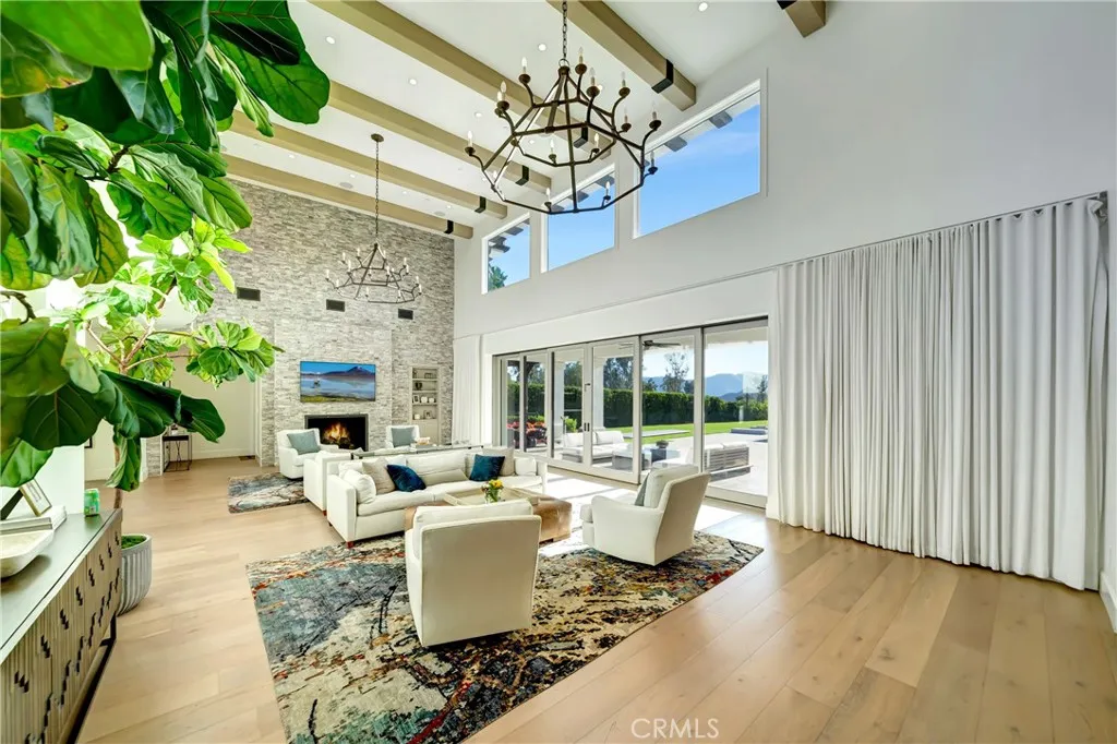 Luxury awaits!!! Privately gated and located within the exclusive gated community of Abercrombie Ranch Estates, this impeccable estate boasts over 10,000 sqft and is perfectly situated on an "endless" flat lot. Mesmerizing mountain views surround this luxurious resort-like compound. Glass doors open to an impressive grand entrance complete with wood flooring, custom finishes, designer lighting and wall to wall pocket doors creating an incredible indoor-outdoor living space. Find soaring high ceilings, floor to ceiling stone fireplace, a state of the art chef's kitchen featuring stone counter tops and high grade Wolf appliances, exotic built-in fish tank, custom painted home theater, fantastic home office, a formal dining room complete with bar, floating wine racks and so much more. The custom finishes truly add a rare layer of luxury to this home. Enjoy 7 bedrooms and 9 bathrooms. The natural light and free flow design lead up the iron staircase and welcome you to views, views and more views. Each bedroom, each bathroom and bonus room complete with their own designer approved vibe. The Primary suite is a true masterpiece, featuring a fireplace, separate sitting area, spa-like ensuite with a steam shower+++, 2 impressive closets and more. Outside find a true entertainer's retreat. The impeccable grounds are a dream! Enjoy an fantastic outdoor patio, infinity spa, baja entry swimming pool, outdoor kitchen complete with stone counter tops and more, find an outdoor casita featuring vaulted beam ceilings and bi-fold glass doors, perfect for an indoor/outdoor gym. Find glass fire