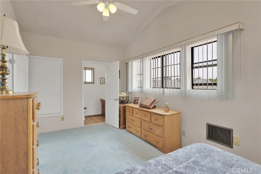Fantastic Golf Course Home on 1 North Tucked away in a quiet cul-de-sac, this charming golf course home offers both comfort and convenience with beautiful views and thoughtful upgrades. The property features a two-car garage with wrought iron fencing, a separate golf cart garage, and a spacious front yard with a welcoming porch, rain gutters, and a tile roof. Upon entry, a versatile bonus room awaitsperfect for a utility space, craft room, or even an additional cart shed. The foyer showcases rock flooring, leading into the home with a blend of LVP and carpet throughout. The kitchen is bright and spacious, offering Formica counters, a gas cooktop, pantry, bar seating, a breakfast nook, and a skylight. Just off the kitchen, youll find an indoor laundry room with a sink for added convenience. The large living room features a gas Heatilator fireplace and is wired for speakers, making it an inviting space for entertaining. The first primary suite includes LVP flooring, a swamp cooler, a generous walk-in closet, and a spa-like bath with a jetted tub, upgraded tile shower, and matching counters. The second primary suite is also spacious, with direct access to the guest bath, complete with upgraded shower tile and a skylight. Upstairs, a bonus room with an in-wall air conditioner leads to an additional bedroom with a half bath and a huge balcony overlooking the course. The backyard is a true golfers paradisefeaturing a covered patio, built-in BBQ, outdoor gardening closets, a private putting green, and mature pistachio, pomegranate, and grape trees. This home blends functionality,
