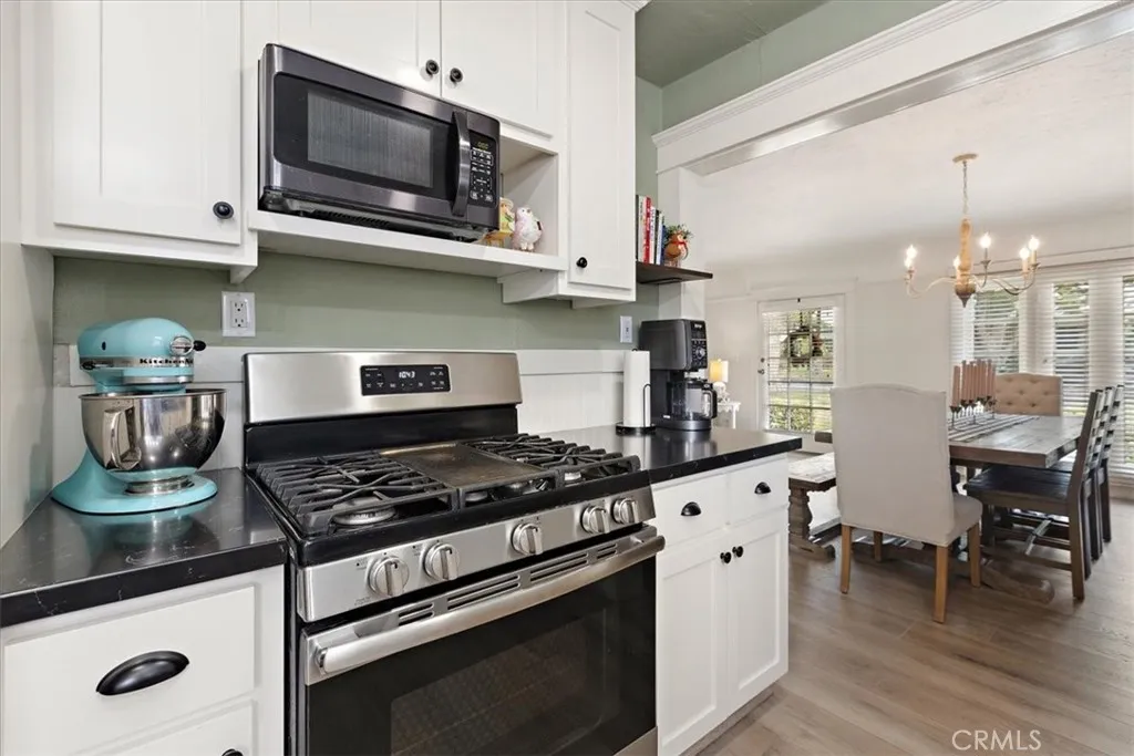 Historic home located in the heart of "old" Ontario. Though over 100 years old this home has been completely remodeled and updated. New electric wiring and panel. Wood-look laminate flooring, new kitchen cabinets with custom hardware and Quartz countertops, "farmhouse" sink and upgraded faucets and appliances, custom built-ins including bookcases in formal living room, oversized mantle on natural stone fireplace in formal dining room. Utility room is utilized as home office with built-in desk and storage cabinets. Tub/shower in bath recently re-glazed with impeccable finish, upgraded cabinets, countertops, sink, fixtures, and more! Custom light fixtures/fans recently installed in formal living and dining rooms, and both bedrooms. Newer wall/window a/c units in living room and both bedrooms. Large concrete patio in rear yard for comfortable "outdoor living." Huge lot with mature trees offering afternoon shade to patio area, large open gravel/rock area, and large grass yard. Newer vinyl fencing and block perimeter walls.