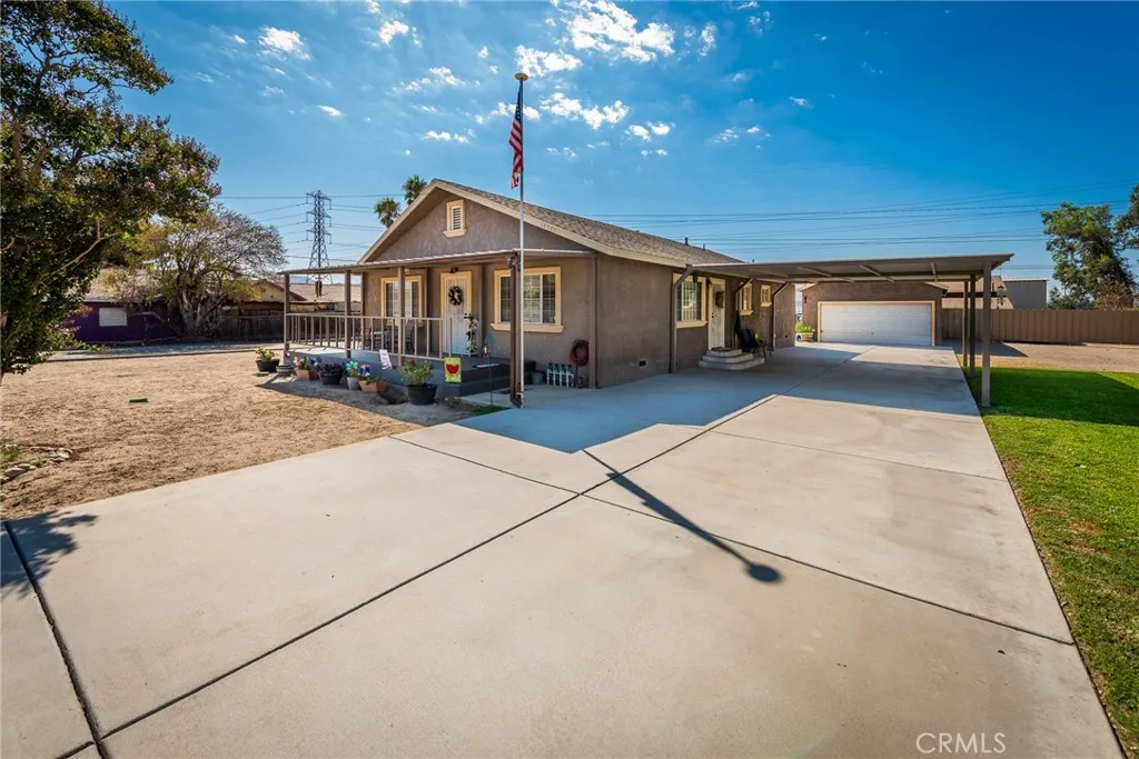 Great opportunity- wonderfully maintained property on nearly flat, usable land, 2 APNs, over 1 acre horse property (main parcel with home is 1.01 acres) and smaller rear parcel is .06 acres), fully fenced with dual gates, including gated front yard, driveway to 2-car detached garage. 2 large outbuildings. Fenced backyard separates the home from the rest of the land. Single story cutie with full-length front porch, spacious carport/side patio. Backyard offers covered back patio and separate shade patio- perfect for entertaining. The interior of this home is wonderful and updated- dual paned windows, family room with fireplace. Large dining area is open to the kitchen with breakfast bar, walk-in pantry. Inside laundry room with storage cabinets. 2 additional rooms located on front of home perfect for office or small bedroom- no closets. Must see!
