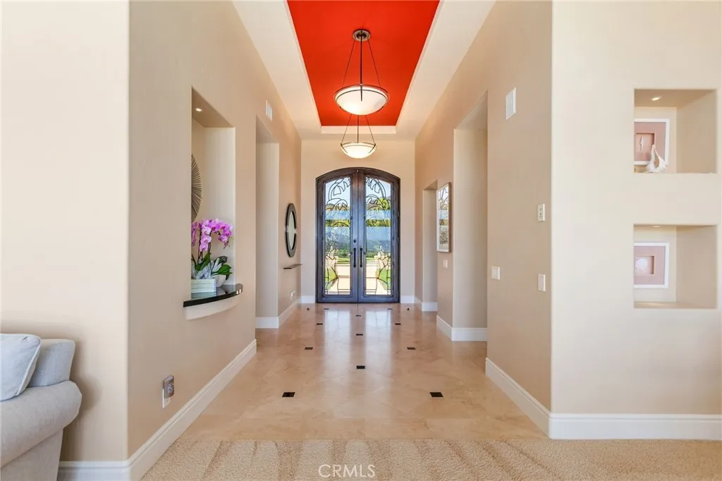Situated on nearly 14 pristine acres, this custom-built De Luz estate offers unmatched privacy, elegance, and panoramic views of rolling hills and twinkling city lights. Beyond the private electronic gate, every detail reflects thoughtful design and superior craftsmanship. Constructed with insulated concrete form (ICF) technology, the home boasts 12-inch exterior walls for durability and efficiency, sound-insulated interiors, Marvin windows and doors, a whole-house Life Source water system, two Noritz tankless water heaters, zoned heating and cooling, Lutron lighting, and a genuine two-piece clay tile roof. The interior features soaring 12-foot ceilings in the main living areas, a sunken bar with sink, refrigerator, and wine cooler, plus custom cabinetry throughout. The chefs kitchen is equipped with a new built-in stainless steel KitchenAid refrigerator, dual Miele dishwashers, and a warming drawer. Electric retractable screens in the living and family rooms add comfort and convenience. The primary suite offers breathtaking views, a sitting area, private deck access, dual vanities, a jetted shower, and an oversized soaking tub. Two additional bedrooms feature en-suite baths. The garage is fully upgraded with custom cabinetry, granite countertops, a butcher block workbench, and a Martin insulated garage door with low-noise openers. Outdoor living is exceptional with a full-length deck, wood-burning fireplace dining area, remote-controlled pergola, hot tub, and multiple lounge spaces ideal for entertaining. Just three miles from Old Town Temecula, this estate blends tranquil