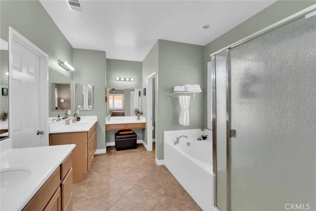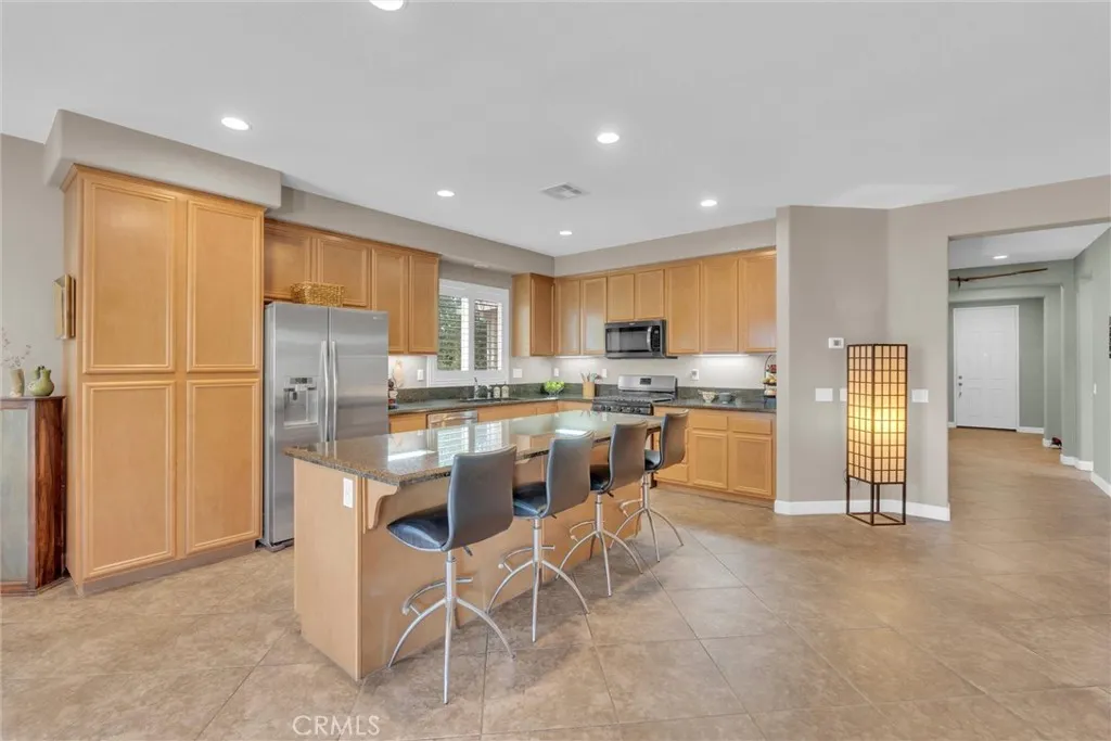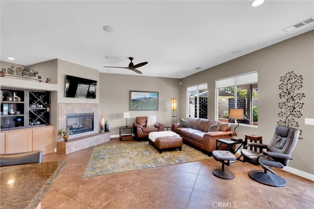 Popular single-story home on a Corner Lot with Open Floorplan. No rear neighbors! 3 Spacious bedrooms & 2 bathrooms. This home is in pristine condition and shows true pride of ownership. Enter through a lengthy hallway with high ceilings that opens up to the Open Great Room. The beautiful gourmet kitchen features generous cabinets, a large island ,stainless steel appliances, and granite countertops. New 2025 Stove, Garbage disposal and Water Heater! Spacious open Great Room with surround sound system & cozy fireplace with raised hearth is the perfect place to entertain. Primary suite is on one side of the home, separating you from the other 2 bedrooms. Primary bathroom with a Separate walk in shower and soaking tub, generous walk-in closet and dual sinks & vanity! There is also a huge walk in closet! Secondary bedrooms are large , one featuring a Barn Door entrance! Additional features include an Indoor Laundry room with storage cabinets, Plantation Shutters, Ceiling Fans and beautiful oversized 20" tile flooring throughout the living spaces. Laminate flooring in bedrooms. Outside, the backyard features a fully landscaped, low maintenance yard with no rear neighbors! Pick your own fruit from the lemon & lime trees! Large covered alumawood patio cover, with custom hardscape, and show stopper built in fire pit with fire glass. Block wall fencing, with vinyl fencing on one side. Extra large 2 1/2 car garage! Located in the award-winning Temecula school district, in the Dutch Village neighborhood near sports parks, playgrounds, walking trails and shopping, this home has it all!