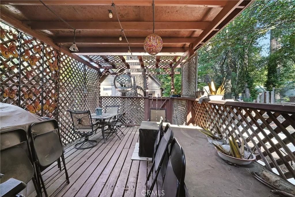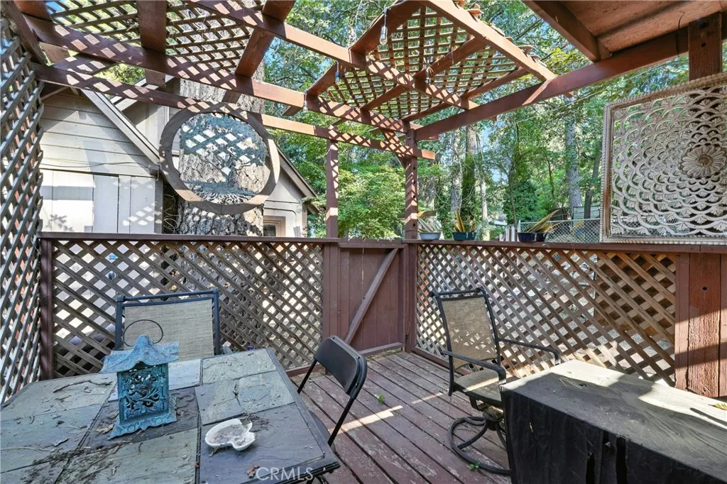 Now offered at $399,888 one of Crestlines best values for a fully furnished multi-unit property just 1 mile from Lake Gregory. This rare turn-key opportunity features a beautifully rebuilt main home plus two additional dwelling units, offering exceptional flexibility for owner-occupants, multi-generational living, or rental income potential. Properties with this level of versatility, privacy, and readiness are seldom available in this price range. This upgraded Crestline property offers a fully furnished main home plus TWO ADUsideal for short-term rentals, extended family living, or multi-unit income production. Few homes provide this level of flexibility, privacy, and turn-key readiness. Rebuilt with permits in 2021, the main home lives like new. Enjoy a spacious living area with exposed beams, a cozy wood stove, and engineered wood flooring. The kitchen features a six-burner gas range, stainless steel appliances, charcoal granite counters, and white shaker cabinetry. The bathroom includes a separate shower and soaking tub. Bedrooms are finished in neutral, inviting tones. Both ADUs have private entrances, a kitchenette, and a bathperfect for guests, multi-generational living, or rental income. The additional upstairs lounge above the garage adds valuable flex space for a studio, office, or game room and opens to a balcony with views of the property. Set on a near-level 10,000+ sq ft fenced lot, the grounds include a seasonal stream with two bridges, creating a rare and serene mountain setting. Parking is generous with a 1-car garage, driveway, and extra room for multipl