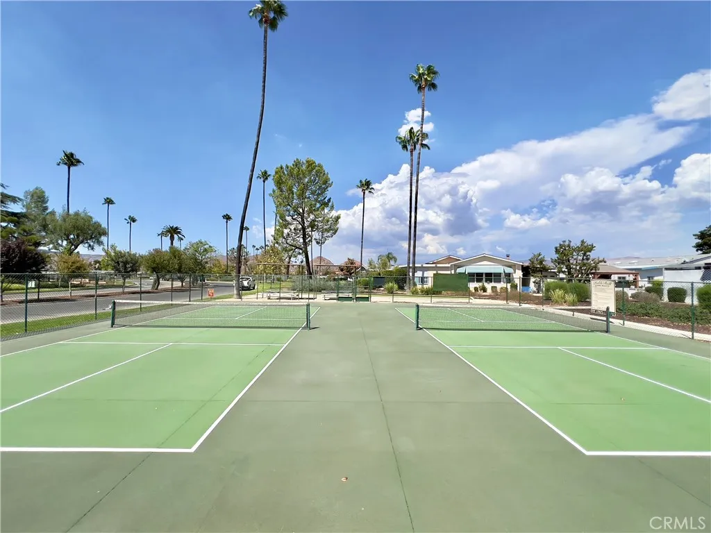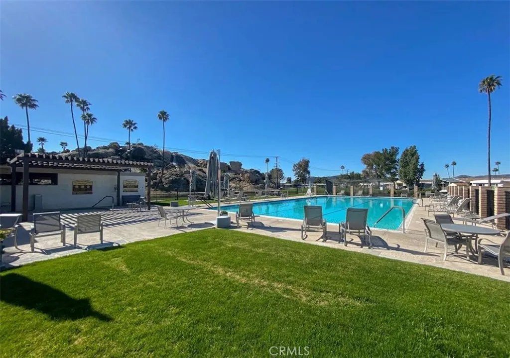 Welcome to the luxurious, golf resort, 55+ community of The Lakes at Hemet West. This is more than a home, it is a lifestyle, with endless opportunities, community activities, swimming pool, golf courses, billiard rooms, dog park, lakes, waterfalls, walking trails and so much more. Living in a luxurious lifestyle, yet affordable, clean, comfortable home with amazing views! Double wide with customized ADA ramp leads to long, wide front porch, sliding door for easy, safe, convenient entry. Step inside to the large open living area, featuring two living rooms, one with fireplace, can use as loft or office space, and a sliding door which brings in natural lighting into your home. And the other living room features with beautiful view of mature trees shading, The lush green belt and views of the distant hills. Exceptionally quiet location, good front porch view of the golf course. Plenty of extra storage in the spacious kitchen. Each of the 2 bedrooms has its own bathroom for privacy & convenience. One of the bathroom features a separate shower & large bathtub. Both bathrooms recently install new plumbings. All bedrooms with large closet space. Laundry room in the hallway, Bosch gas dryer, linen closet & ironing area. Laundry room can exit to the carport, and enter back inside the home after all your outings! Cozy breakfast counter bar area in the kitchen. Right next to the spacious kitchen is formal dining area with built in cabinets, and large picture framed windows looking outside the green grass area.