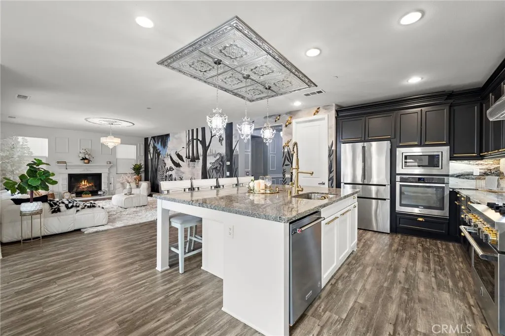 Discover a rare opportunity to own one of the most beautifully upgraded and best-priced homes per square foot in the prestigious Park Place community of Ontario Ranch. Perfectly positioned with no neighbors behind and tranquil tree-top views, this residence offers refined living and exceptional value in one of the Inland Empires fastest-growing luxury enclaves. Step inside to experience a spacious, light-filled design enhanced by wide-plank luxury flooring, elegant finishes, and thoughtful upgrades throughout. The chefs kitchen is both functional and stunningfeaturing an oversized island, rich dark cabinetry, high-end stainless appliances, and a custom backsplash that anchors the open-concept living area. The great room flows seamlessly into the dining space and out to a private outdoor retreatcomplete with a covered patio, outdoor kitchen, river rock accents, and glowing string lights that make every evening feel special. The main-floor bedroom with private entrance and adjacent full bath offers flexibility for guests or multi-generational living. Upstairs, the primary suite feels like a five-star escape with a massive spa-like bathroom, dual vanities, soaking tub, walk-in shower, and a custom-built walk-in closet. The additional bedrooms are beautifully finished, while the oversized loft provides another full living area perfect for work, play, or relaxation. Additional highlights include solar panels for energy efficiency, a three-car garage, and access to resort-style amenitiesa clubhouse with entertainment spaces, fitness center, pool, spa, tennis courts, and regular c