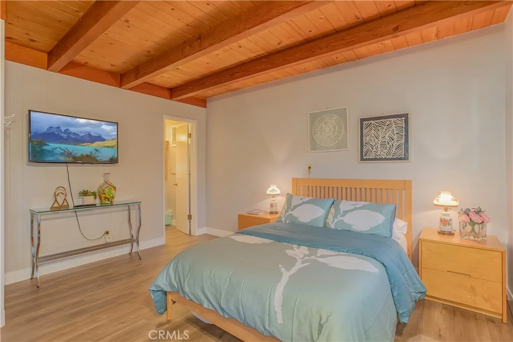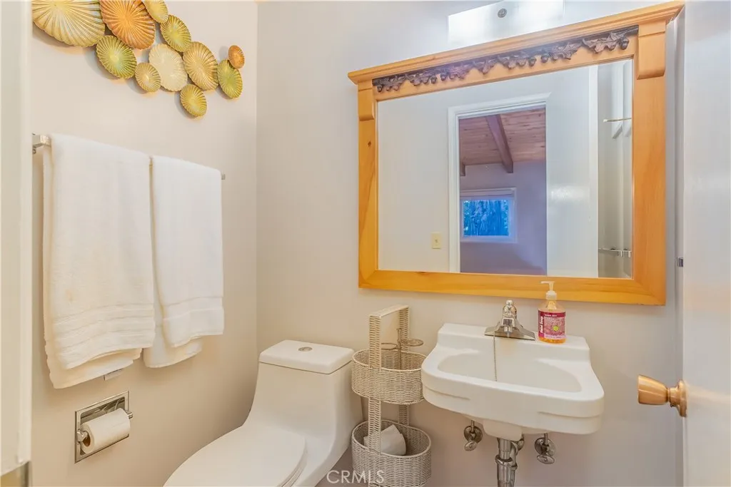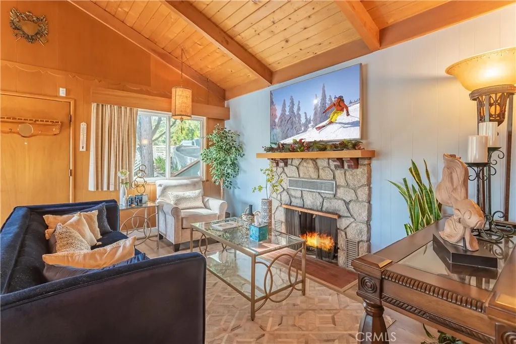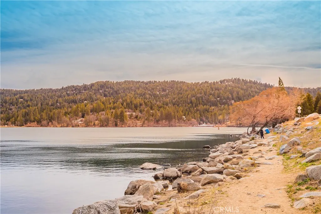 The best LAKE VIEW home in Crestline. It has FULLY FURNISHED with incredible LAKE and mountains VIEW. It offers 2 bedrooms, 2 baths plus a HUGE bonus room. The living room is warm and inviting with vaulted wood beams ceiling, and a wood-burning cozy fireplace. The open-concept kitchen with a bar counter flows seamlessly into the spacious dining area, where large picture windows frame the spectacular lake views. The deck is overlooking 180-degree views of Lake Gregory and mountain. Downstairs, a large bonus/game room and half bath provides excellent potential for guest or it can be use as 3rd bedroom. washer/dryer inside the house. This property is sold fully furnished and is a turn-key, mountain retreat package. Just a minutes from the lake and walking distance to Goodwin & sons supermarket, crestline village, shopping, and restaurants. This is the perfect vacation getaway home with year-round mountain sanctuary.