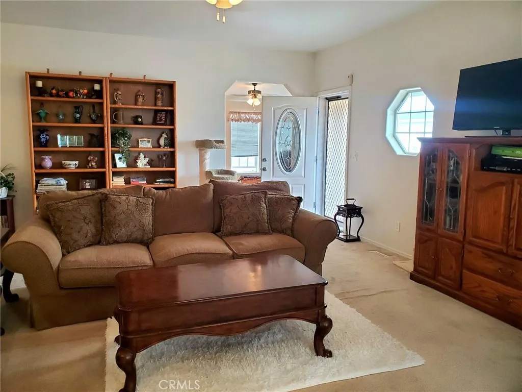 Get ready to move on this big,(1793 SQ FT) beautiful TRIPLEWIDE home in highly desirable GATED SENIOR 55+ COMMUNITY, Mountain View Villas. Original owner, 1st time on market. Custom river rock fireplace in living room opens to formal dining room. The gourmet kitchen is spacious with lots of counter for everyone to join the chef! Kitchen island is movable. Bar with in kitchen eating area, lots of light here also. The master suite has a wall to wall mirrored closet and bath is huge with soaking tub and shower with more wall space to add your personal storage. Bedrooms 2 & 3 are good size with extra cabinets in hall for everyone's linens. Laundry room leads to attached garage and rear yard. Lots of architectural personality to make this feel like home. There is an off leash doggy park, RV storage (with availability) private pool, spa, recreation room with work out equipment, library, card tables, a social calendar to keep busy and NO HOMEOWNER DUES. BASE Space rent is $786 monthly. This is all owner occupied, NO RENTERS. Shopping close by with Jess Ranch Market Place a few minutes away. Don't miss this one.