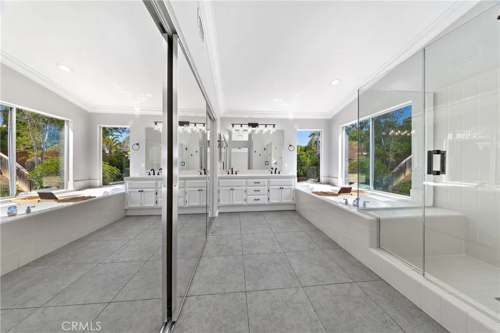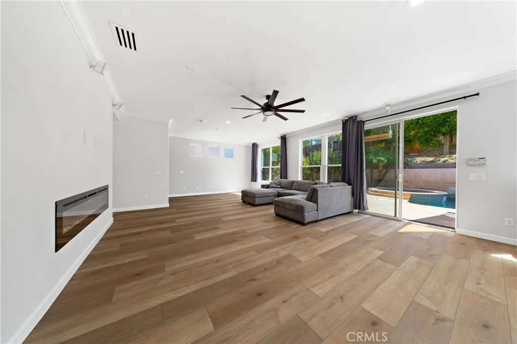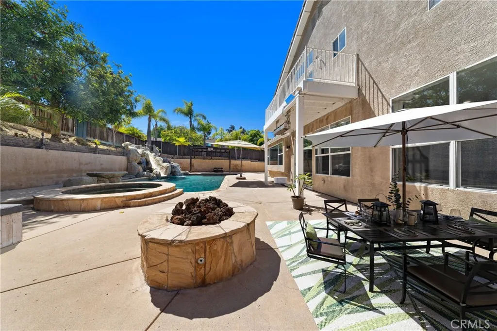 Discover this rare, remodeled saltwater pool home with RV parking on a small pocket of lovely homes near Guajome / Ivy Ranch / Rancho Del Oro super desirable streets. With no HOA or Mello-Roos and a spacious 3-car garage - parking can accommodate up to 8 vehicles, this property combines convenience with lifestyle. RV space behind the gate is a min of 45x12 but wider once inside the gate. You may be able to add an Adu in that space? The tiki hut is pre plumbed with gas for an outdoor BBQ as well as near the kitchen window. Close to Alamosa, MLK and Ivy Ranch schools, skatepark & parks too. The Guajome park & lake is close by for outdoor strolls. This beautiful street in tucked away with no thru traffic, don't miss this rare find. Entertain with ease in the sparkling pool complete with hot tub, jumping rock and slide or unwind in the beautifully updated interior. Recent upgrades include new flooring throughout both levels, fresh baseboards, modern lighting, and interior paint. The oversized kitchen shines with stainless steel appliances and ample counter space, perfect for gatherings. The new LVP on lower level was just installed with baseboards as well as upper-level quality carpeting & baseboards as well as designer paint. The open floorplan has very large rooms with all 4 bedrooms upstairs. The floorplan has an optional 5 th bedroom option on the far end of the family room by adding a wall & door if needed. The primary suite offers vaulted ceilings and private access to a new wood deck, ideal for morning coffee or evening relaxation. Upstairs, all bedrooms are filled with