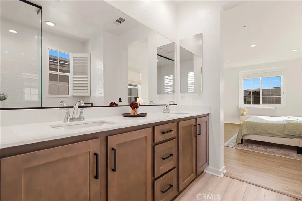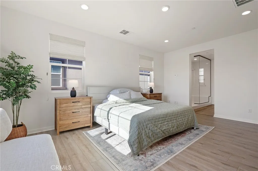 Price Improvement! Welcome to 2983 E Halton Paseo, nestled in the desirable Cambridge Court neighborhood of Ontario. This fully upgraded home showcases luxury vinyl plank flooring throughout, quartz counters throughout, recessed lighting, and an open-concept design. The modern kitchen features quartz countertops, stainless steel appliances, a walk-in pantry, and a spacious center island that flows seamlessly into the living room. Sliding doors open to a wrap-around backyard with low-maintenance artificial turf, perfect for relaxing or entertaining. The main floor offers a bedroom and full bathroom, along with a two-car attached garage. Upstairs, enjoy a large loft and a primary suite with a walk-in closet and spa-inspired bathroom, complete with dual sinks, quartz vanity, and a supershower. Two additional bedrooms share a full hall bathroom. Energy-efficient leased solar panels add value and savings. Community amenities include a nearby park and playground.