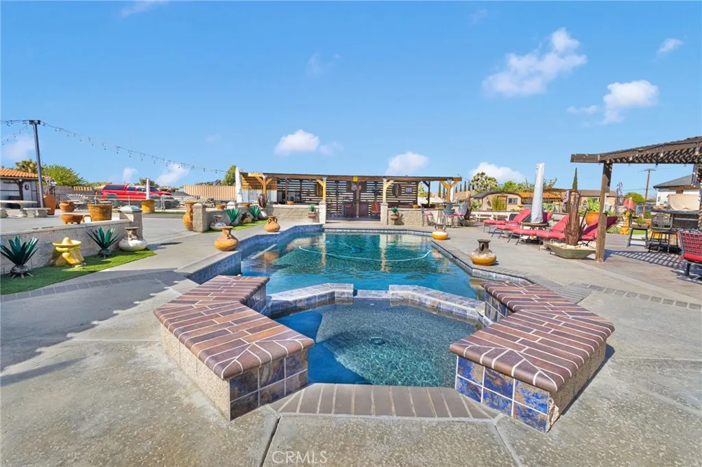 Entertainers Dream Estate in Hesperia, CA | 4 Master Suites | Resort-Style Backyard | 1 Acre Welcome to this exceptional luxury estate nestled on a full acre in the heart of Hesperia, a true entertainers paradise designed for grand living and unforgettable gatherings. With four spacious master suites, each featuring its own private en-suite bathroom, this stunning residence offers privacy, comfort, and elegance throughout. As you arrive, you're greeted by a custom wrought-iron double door entry and a wrap-around driveway, setting the tone for the exquisite craftsmanship found inside. Step into a beautifully appointed interior showcasing formal living and dining rooms, elegant crown molding, and two fireplaces, one in the living room and another in the spacious game room, perfect for entertaining. At the heart of the home lies a custom chefs kitchen, fully equipped with a commercial-grade 6-burner range, granite countertops, and ample space for cooking and hosting. Whether you're preparing a family meal or catering an event, this kitchen delivers both style and function. The resort-style backyard is where this property truly shines. Designed to accommodate large family events and private gatherings, the outdoor space features: A sparkling pool and spa A pool house for added convenience Two custom patios perfect for outdoor dining and lounging Custom outdoor restrooms A full bar for entertaining guests in style Beautiful block walls surrounding the property for enhanced privacy and security With its flexible layout and amenities, this estate has been successfully used for pri