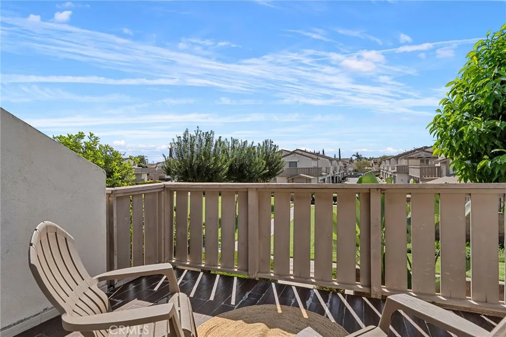 Welcome to Cambridge Green, a gated community so desirable that homes here rarely come up for salethe last one sold in 2024! Perfect for 1st time home-buyers! This 3 bedroom, 2.5 bathroom unit also features a permitted 103 sq ft den area in the upstairs primary suite, making it an even more unique opportunity. Set on a large, lush lawn between the pool and tennis courts, this home offers one of the best locations in the complex. Enter through the front door into a bright kitchen and dining area that flows seamlessly to a spacious private patioperfect for outdoor dining or relaxation. The adjoining living room creates an inviting gathering space. The main living areas have wood flooring, recessed lighting, and fresh finishes. Note: this home has scraped ceilings (downstairs) with recessed lighting, adding potential for future customization. Upstairs, the vaulted ceiling, oversized primary suite boasts a walk-in closet, vanity area, full bathroom, and its own private balcony. The permitted den addition offers flexibility as a home office, nursery, cozy retreat or additional 4th bedroom! Two additional bedrooms and another full bath complete the upper level. Other updates include a newer water heater. The 2-car garage provides ample storage, 220 Electric Vehicle charge port and laundry hookups. Cambridge Green residents enjoy resort-style amenities including a pool, spa, clubhouse, tennis court, and abundant guest parking. Ideally located near the 405 & 22 Freeway, Mile Square Park, Little Saigon, Phuoc Loc Tho, Saint Barbara Church, Bt Nh Temple, shopping, and diningwith Disn
