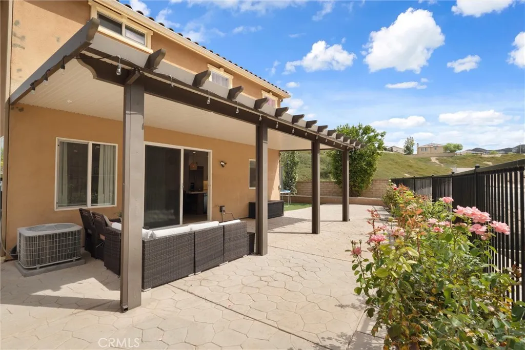 Welcome to your forever home in the heart of Plum Canyons scenic and vibrant community! Perfectly set at the end of a quiet cul-de-sac, this stunning Echo Point residence blends privacy, comfort, and modern efficiency. Surrounded by rolling hills, this 4-bedroom, 3-bath home with a versatile loft offers the perfect balance of serenity and convenience in one of Santa Claritas most desirable neighborhoods. Step inside to rich wood flooring that flows through the entry, living, and dining areas, creating a warm and inviting atmosphere. Soft pleated linen drapes frame the windows and bring in abundant natural light. At the center of the home is a fully renovated chefs kitchen featuring quartz countertops with soft gray veining, jewel-toned backsplash, a farmhouse sink, rattan pendant lighting, touchless faucet, walk-in pantry, and premium KitchenAid appliances including a microwave drawer and professional 6-burner double-oven range. The kitchen opens seamlessly to the family room with recessed lighting, creating a true great-room layout ideal for gatherings and everyday living. The backyard offers a full-width custom covered patio with hillside views, stamped concrete walkways, low-maintenance landscaping, and a gazeboperfect for BBQs, summer evenings, and year-round relaxation. The floor plan includes a full bedroom and bathroom downstairs, ideal for guests or multigenerational living. Upstairs, the spacious loft provides flexible space for work, play, or movie nights. The primary suite is a peaceful retreat with hillside views, dual walk-in closets, and a spa-inspired bath wi