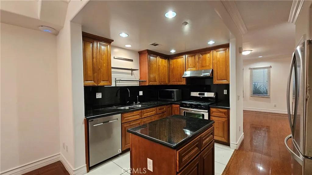 This beautiful Townhome is in a very private and quiet gated community and is conveniently located in one of Pasadena's most desirable neighborhoods. On the first floor, the living room with a high ceiling features a modern fireplace and it is adjacent to the kitchen. The gourmet kitchen features a black granite countertop and an island. The kitchen also has stainless steel appliances. Next to the kitchen is the dining room with glass French doors opening to the small backyard. The first floor also features a half bathroom with a sink and a toilet. The stacked laundry machines are in a closet on the first floor. Down to the steps the direct-accessed two-car garage is in there. The garage features an automatic garage door opener. On the upstairs, there are two good-sized bright and sunny bedroom suites each with their full bathrooms and two closets. The central Air Conditioning and Heating with Google Nest thermometer keeps the house comfortable. Laminate wood floors are throughout the home. This is truly a beautiful and comfortable home for everybody.