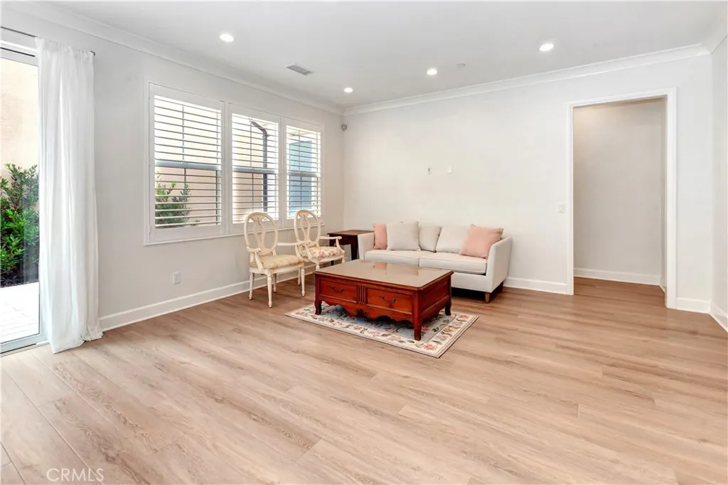 MOVE IN READY, recently renovated, detached home located in the Corte Bella of Orchard Hills Village, one of the best communities in Irvine. A very private lot to relax and enjoy indoor/outdoor This open concept 3 beds + 2.5 baths + den home has newly upgraded gorgeous, engineered wood flooring, Premium Interior Paint, Crown Molding, and Recessed Lighting! The gourmet kitchen includes Kitchen Aid stainless steel appliances, quartz countertops, decorative Ceramic Tile FULL Backsplash, plantation shutters and designer shades a walk-in pantry and a large kitchen island which flows seamlessly into the living room. The master bedroom is conveniently located downstairs with an en-suite spa-like interior bath, dual sinks, bathtub and walk in shower. The downstairs den can be converted into a 4th bedroom. Upstairs boasts two bedrooms with a peek, a boo view and a full bath. upgraded big wide sliding glass door open to professionally landscaped with stone pavers and trees The newer washer and dryer were included in the ground floor laundry room. Attached 2-car garage comes with epoxied floor, tankless water-heater and water softener. Close to the resort-inspired club house features: junior-Olympic swimming pools, spas, tot lots, parks, picnic area with BBQ grills, sport courts, scenic jogging/biking/hiking trails and open space. Walking distance to award-winning Northwood High School. 12-min to Great Park. Easy access to the I-5 & 261 Toll Road and Irvine spectrum.