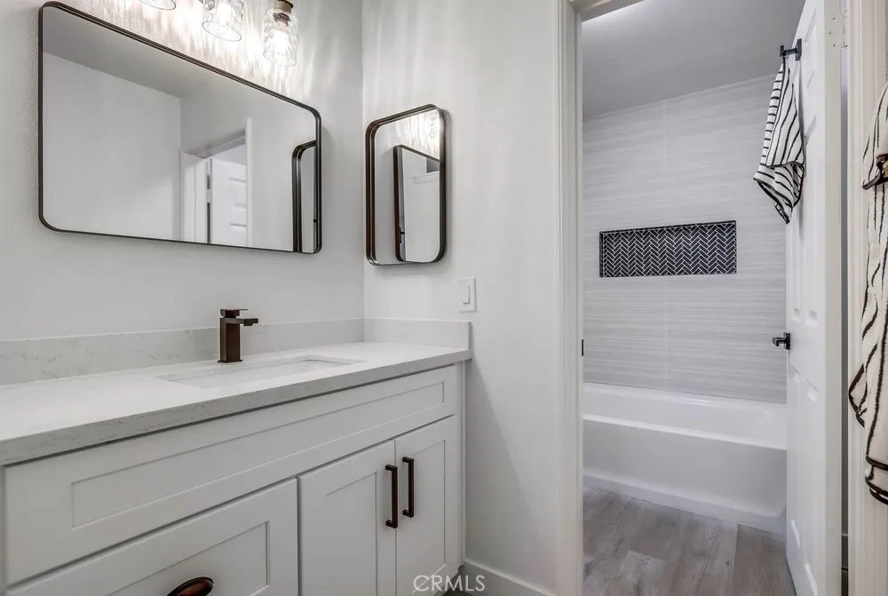 Modern Coastal Living Just Minutes from the Beach Fully Remodeled 2-Bedroom, 2.5 bath at Pointe Surfside in Huntington Beach! Welcome to your next-level coastal lifestyle. Just 1.5 miles from PCH, this boldly reimagined 2-bed, 2.5-bath first-floor condo in the gated community of Pointe Surfside, delivers sleek design, smart upgrades, and all the indoor-outdoor flow you wantplus resort-style amenities to match. Upgrades throughout from the floors to the fixtures so you can skip the projects and head straight to the beach. Youll love the stylish, fully opened-up kitchen with white shaker cabinets, quartz counters, black hardware, new dishwasher, slide-in gas range + modern range hood. The breakfast bar is perfect for casual mornings or relax with friends. Open-concept living + dining area with fireplace and seamless flow for entertaining. Two spacious bedrooms each with private ensuite baths, plus a chic powder room for guests. Totally updated bathrooms with new tubs, designer tile, stylish mirrors, modern vanities, and updated fixtures. High-end waterproof laminate flooring throughout. Modern custom barn doors on bedroom closets, fresh paint, smooth ceilings, modern window treatments, including roll-up shades on sliders. Private patio with new concreteperfect for weekend hangs, your morning coffee, or creating a lush container garden paradise for plant lovers. There is an in-unit laundry room with hookups, the unit comes with one covered parking space with storage shelf. First-floor location for easy access and enhanced convenience. This unit gives Resort-Style Feel with E
