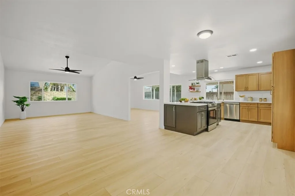 Welcome to this beautifully renovated 4-bedroom, 2-bathroom home that combines modern style with everyday comfort in a highly desirable neighborhood. From the moment you step inside, you'll love the open layout that seamlessly connects the living spaces, creating an ideal flow for both relaxing and entertaining. The heart of the home is the gorgeous kitchen, featuring a large island, updated finishes, and plenty of space to cook, gather, and make memories. The kitchen opens into both the family room and a separate living room, offering flexible space. The primary bedroom is complete with a spacious, renovated en-suite bathroom. A second beautifully updated bathroom serves the additional three bedrooms, making this home perfect for families or guests. Outside, enjoy a spacious back yard and a side covered patio area, a 3-car garage with plenty of room for vehicles, storage, or even a home gym setup. Located in a quiet, friendly neighborhood, this home is close to everything you needschools, parks, shopping, and more. Additional features include new flooring, new windows, recessed lighting, new paint interior/exterior, new kitchen cabinets, new counters, new appliances, new bathroom vanities, new fixtures and much more! This turn-key property is ready for you to move in and enjoy. Don't miss your chance to own this stunning homeschedule a showing today!