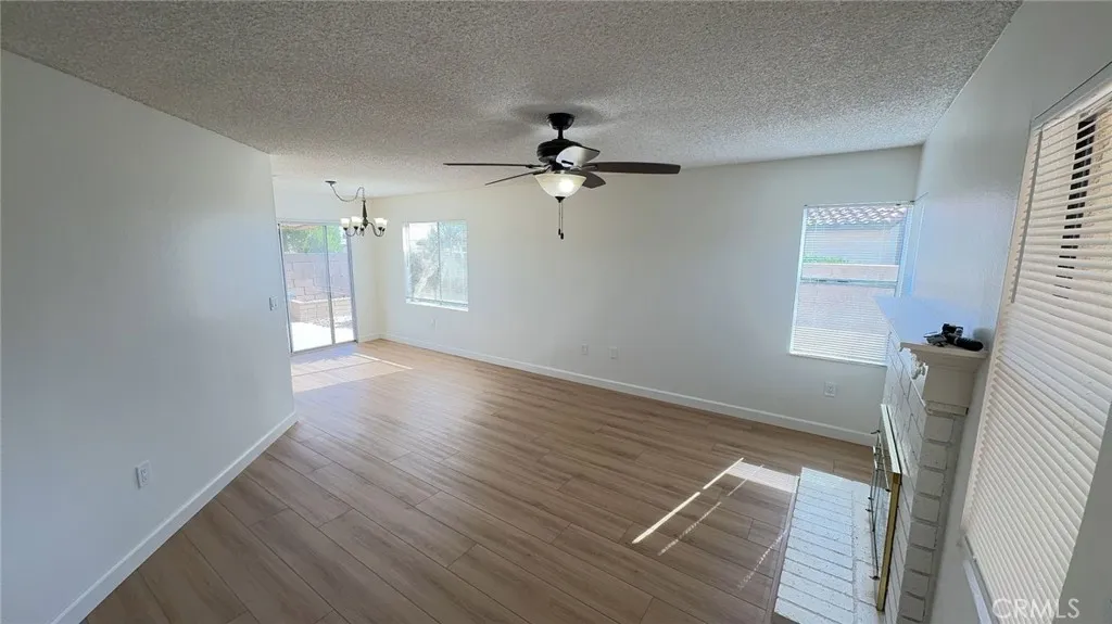 Dont miss out on this charming home in the desirable 55+ Sun City Patio Homes community in Menifee! This updated single-story residence offers: 2 spacious bedrooms the primary featuring a walk-in closet. 1 remodeled bathroom with a convenient tub/shower combo. New luxury vinyl plank flooring throughout for a fresh, modern look. Inviting living room with a cozy brick fireplace and modern ceiling fan, seamlessly open to the dining area. Dining room with patio access flowing into the beautifully remodeled kitchen. Gorgeous kitchen upgrades including quartz countertops, white cabinetry, stylish backsplash, and stainless steel/black appliances. New, energy efficient windows! Well-appointed secondary bedroom perfect for guests or an office. Large 2-car garage with plenty of storage. Private outdoor living enjoy the fully covered back patio, afternoon breezes, and the privacy of block wall and vinyl fencing. Community amenities include access to a clubhouse, pool, and spa perfect for relaxation and an active social lifestyle. This home has everything you need for comfort, convenience, and community living.