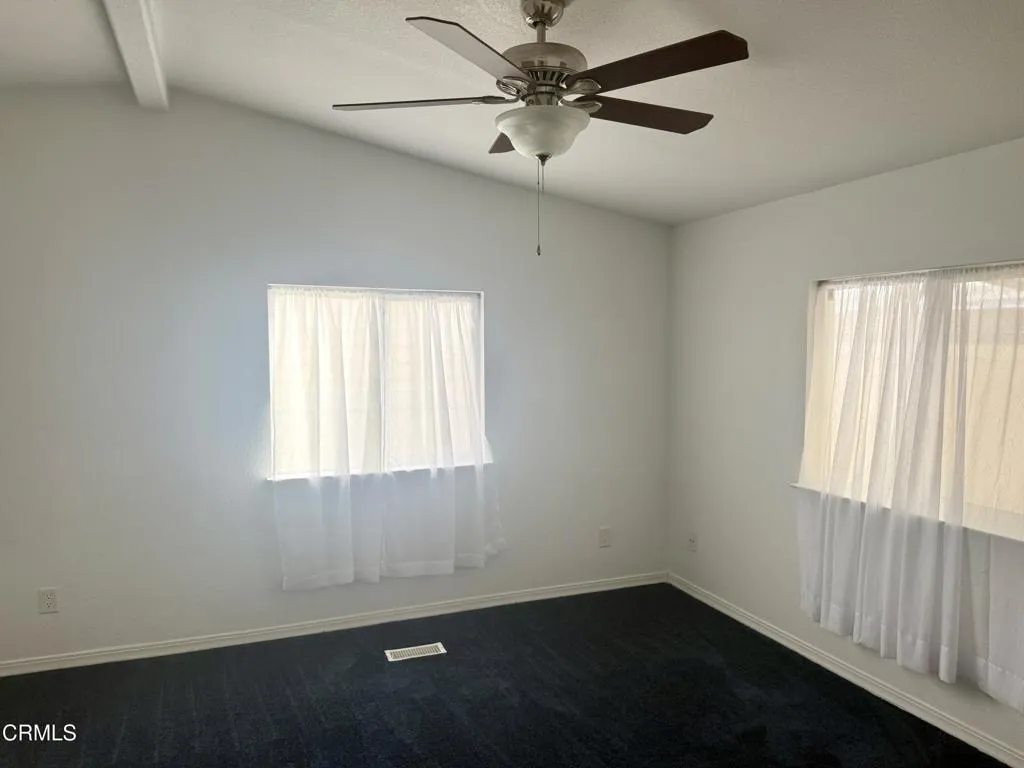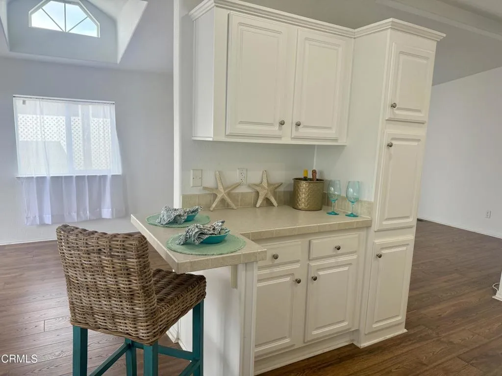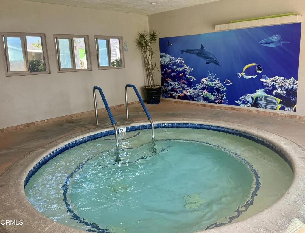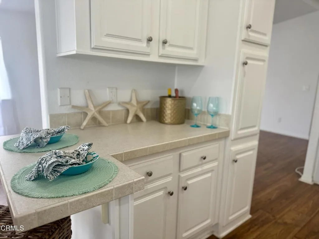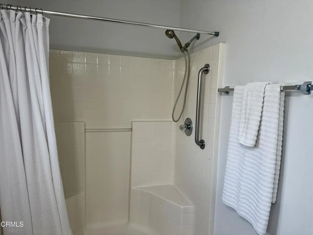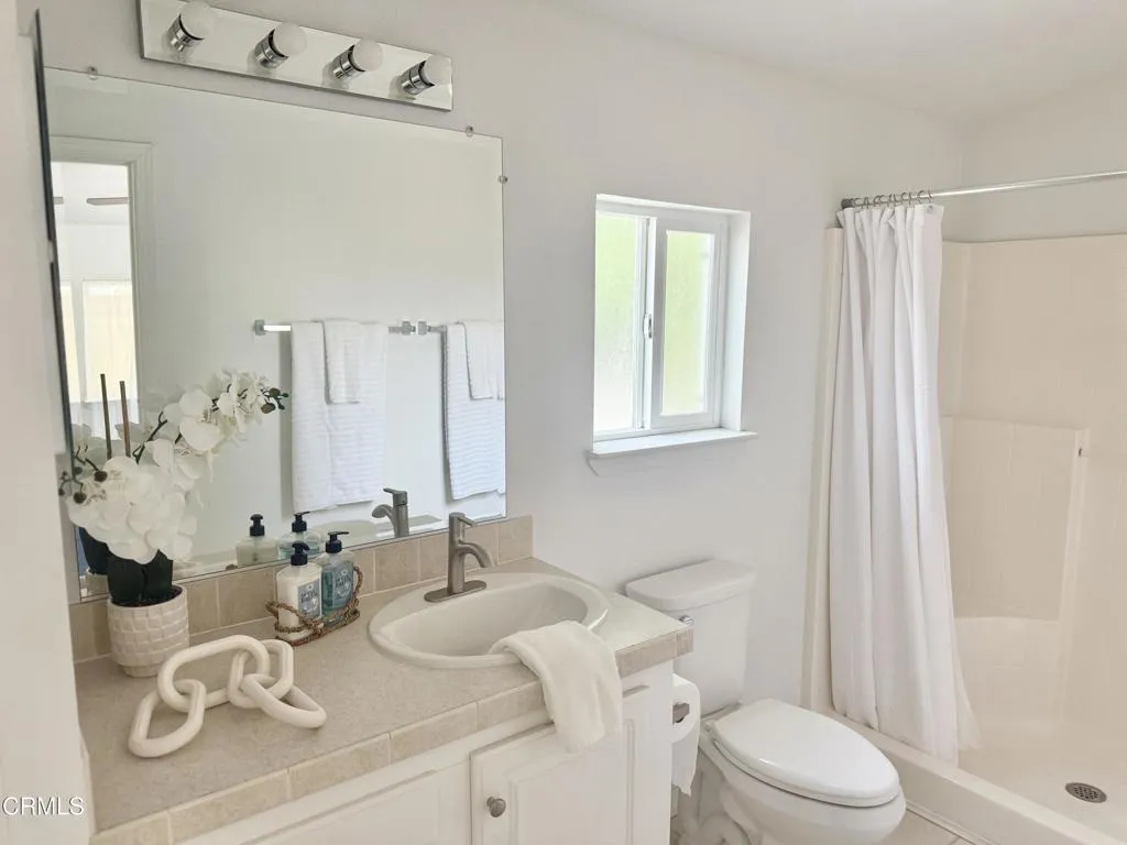 Welcome to 7 Wisteria Way, a well-maintained manufactured home featuring a new Certainteed Landmark Solaris Cool Roof (installed July 2025) and a fantastic location within a desirable age-restricted community. Natural light streams through well-placed windows, highlighting the airy living spaces and easy-care hard-surface flooring throughout (with plush carpet in the bedrooms). The primary suite includes a spacious closet and en suite bath with abundant storage and an easily-accessible shower. The hall bath has a shower and tub combination. Keep cool with ceiling fans in both bedrooms, the family room and the dining area. The light kitchen opens to the dining area with a cute counter for possible seating or serving too. Enjoy the inviting shady front porch with beautiful used brick detail--perfect for relaxing with a book, entertaining or connecting with neighbors in this vibrant, active community. A large storage shed with shelving offers added convenience, while the extended carport can accommodate longer vehicles or two cars parked tandem. Thoughtfully appointed, this is a wonderful place to call home! The community itself has a sparkling pool surrounded by a grassy lawn, palm trees, picnic tables, and courts for shuffle ball and corn hole. There is a covered hot tub as well as an event space. East Ventura combines the quiet atmosphere of agricultural fields mingled with residential neighborhoods including parks and schools. Trailheads at Harmon Canyon to area hiking are found off of Foothill Road. Multiple golf courses are nearby. For dining, shopping and entertainment,