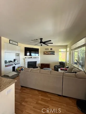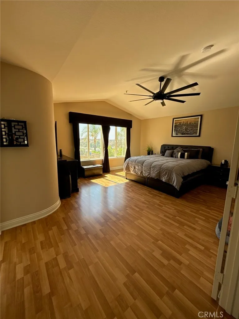 Spectacular views from this beautiful former model home on a cul-de-sac. Large backyard with a pool and spa. As you enter through the gated stamped concrete courtyard into your new home, you are greeted by high ceilings, an elegant wrought iron staircase, a formal living and formal dining room with crown molding, The spacious kitchen opens to the family room and features granite counters w/ full granite backsplash, breakfast bar, white cabinets, double oven, dishwasher and a gas cooktop. The family room opens to the backyard and includes a fireplace, celling fan and built in entertainment center. There are two bedrooms downstairs plus a downstairs bathroom with a shower and upgraded countertop. The second bedroom is an office. Amazing views from the large backyard featuring a newer pool and spa, vast grass area and large covered patio with a tile roof and stamped concrete flooring. Fantastic for entertaining. Upstairs is the grand primary suite with incredible views of the surrounding mountains, hills and canyons. the primary bathroom features dual sinks, a separate shower and tub, and a walk in closet. The other upstairs bedrooms have lighted ceiling fans and share a Jack and Jill bathroom with double sinks and a bathtub, other upgrades include arched doorways throughout, large baseboards, storage shelves in the garage, and an indoor laundry room. So much more to see ! price reduction for fast sale seller are very motivated.