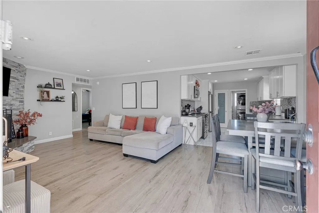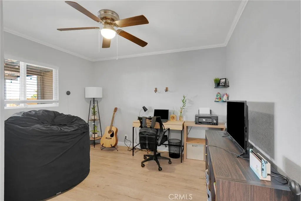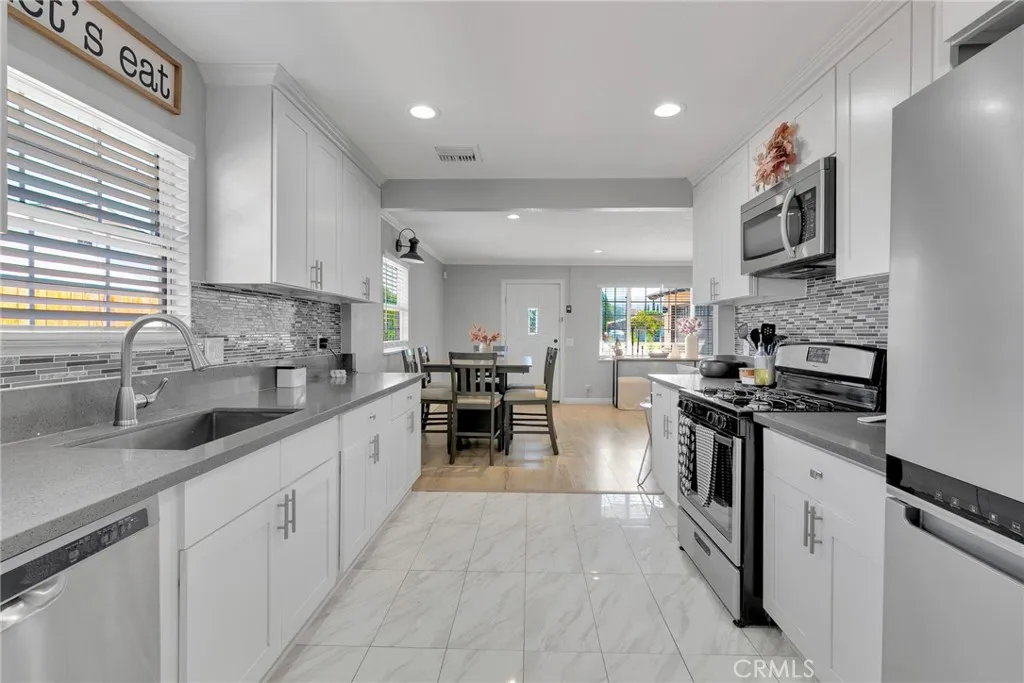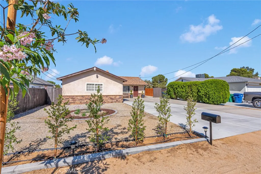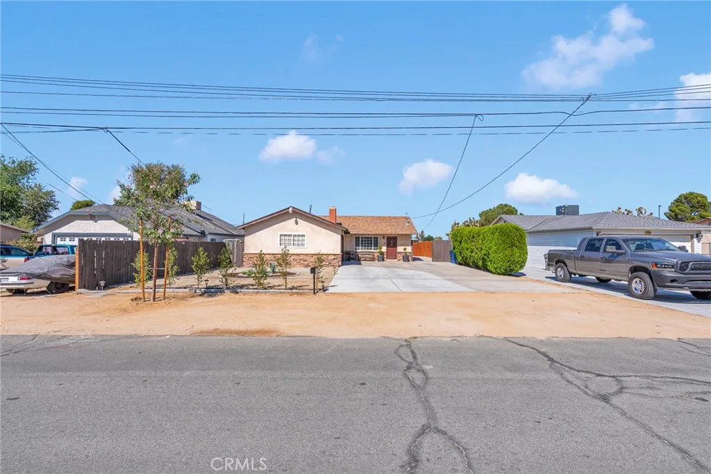 Nestled in the tranquil community of Quartz Hill, this charming residence offers a harmonious blend of comfort and modern style. The home boasts three inviting bedrooms and two well-appointed bathrooms within a thoughtfully designed 1,123-square-foot layout. As you enter, you're greeted by an open-concept living area featuring a cozy fireplace framed by a striking gray brick accent wall, setting a warm and welcoming tone. The adjacent kitchen is a culinary haven, showcasing pristine white cabinetry, gleaming stainless steel appliances, and elegant speckled gray granite countertops that complement the marble white tile flooring. A convenient pantry and laundry room are seamlessly integrated, enhancing functionality. Each bedroom is a peaceful retreat, complete with ceiling fans and sliding door closets, ensuring comfort throughout the seasons. The bathrooms exude contemporary flair, with gray vanities, tub-and-shower combinations, and modern square mirrors adding a touch of sophistication. Situated on a generous 0.40-acre lot, the expansive backyard presents endless possibilities for outdoor living, gardening, or creating your personal oasis. Additional highlights include RV access, central heating and cooling, and an attached two-car garage. This residence is more than just a home; it's a sanctuary where modern amenities meet timeless appeal.