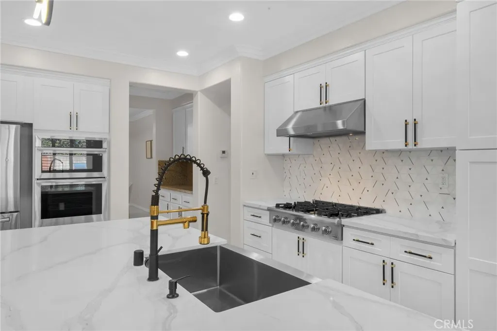 This stunning Sycamore Creek home offers incredible curb appeal with low-maintenance artificial turf in both the front and back yards and a spacious front porch perfect for relaxing evenings. The home also features fully paid-off solar panels, offering energy efficiency and long-term savings. Inside, a tiled entry leads to a formal dining room and formal living room, highlighted by crown molding and fresh interior paint throughout. The open-railing staircase and butlers pantry add an elegant touch, while the walk-in pantry provides ample storage. The extra-spacious family room features a cozy fireplace, media niche, and sliding doors that open to the backyard. The kitchen is truly a showstopper, showcasing stylish cabinet hardware, a marble backsplash, built-in cooktop, double ovens, a large island with breakfast nook, and plenty of counter space for cooking and entertaining. A downstairs bedroom and full bathroom offer convenience for guests, with the bath featuring quartz counters, matching cabinet hardware, a smart toilet, and a beautifully tiled shower. Upstairs, youll find a generous loft and a huge primary suite with double-door entry, barn door, dual vanities, designer lighting, soaking tub, tiled walk-in shower, smart toilet and dual-entry walk-in closet. Three additional spacious bedrooms share another remodeled bathroom with dual sinks, smart toilet and a tiled shower. The upstairs laundry room includes cabinetry and a utility sink for added convenience. The home is also equipped with a QuietCool whole house fan, perfect for efficiently cooling the home and reduci