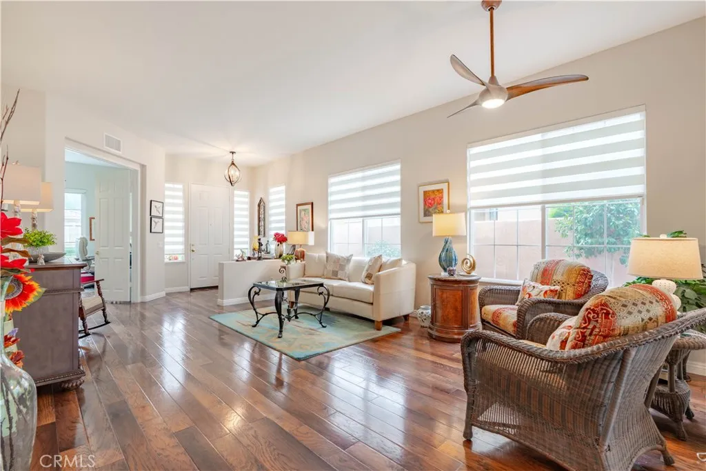 Welcome home to coveted guard-gated Palmia. This desirable floor plan in the Vistas is a gorgeous, COMPLETELY REMODELED single level with 2 primary bedrooms boasting private en-suite baths + guest bath. Home features neutral paint, open, flowing floorplan & lots of windows & view from back yard! Kitchen is STUNNING with upgraded slow-close cabinets & drawers, stainless steel appliances & plenty of counter & cabinet space. Kitchen flows seamlessly to living room. Living room boasts rich hardwood flooring, cozy electric fireplace & custom window coverings. Living room is open & bright & overlooks private back yard with a VIEW!. The larger of the 2 bedrooms is so spacious with an AMAZING remodeled en-suite bathroom including walk-in shower & vanity. The 2nd bedroom is also spacious with a completely remodeled en-suite large bath. Guest bath is open & modern with gold accents. Palmia is an amazing guard-gated community with 18-hole putting green, huge pool & spa, clubhouse, gym, tennis + so much more - all included in the rent. Great location close to shopping, toll road, hiking & biking trials. Truly an amazing opportunity!