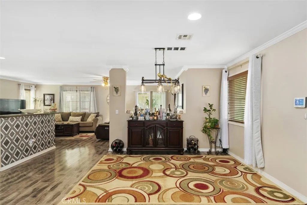 Welcome to this stunning turnkey home featuring a spacious open floor plan with separate living, family, and dining rooms perfect for entertaining and everyday living. The remodeled kitchen is stunning, offering granite countertops, a stylish backsplash, a breakfast bar, and stainless-steel appliances. It opens seamlessly to the living area and is conveniently adjacent to the dining room, creating an inviting flow throughout the main level. Downstairs features upgraded flooring, neutral tones, and a bedroom with a full bathroomideal for guests or multi-generational living. Upstairs, the primary suite offers a relaxing retreat with an en-suite bathroom, featuring a separate shower, soaking tub, and a walk-in closet. Three additional spacious bedrooms, a large secondary bathroom with a tub/shower combo, and a laundry room, all conveniently located upstairs, complete the upper level. Step outside to enjoy a large backyard with fruit trees, providing the perfect setting for outdoor gatherings and summer BBQs. Additional perks include a washer, dryer, and refrigeratorall included! Located close to shopping, parks, and walking trails, this home offers the best of comfort and convenience in a beautiful Menifee neighborhood.