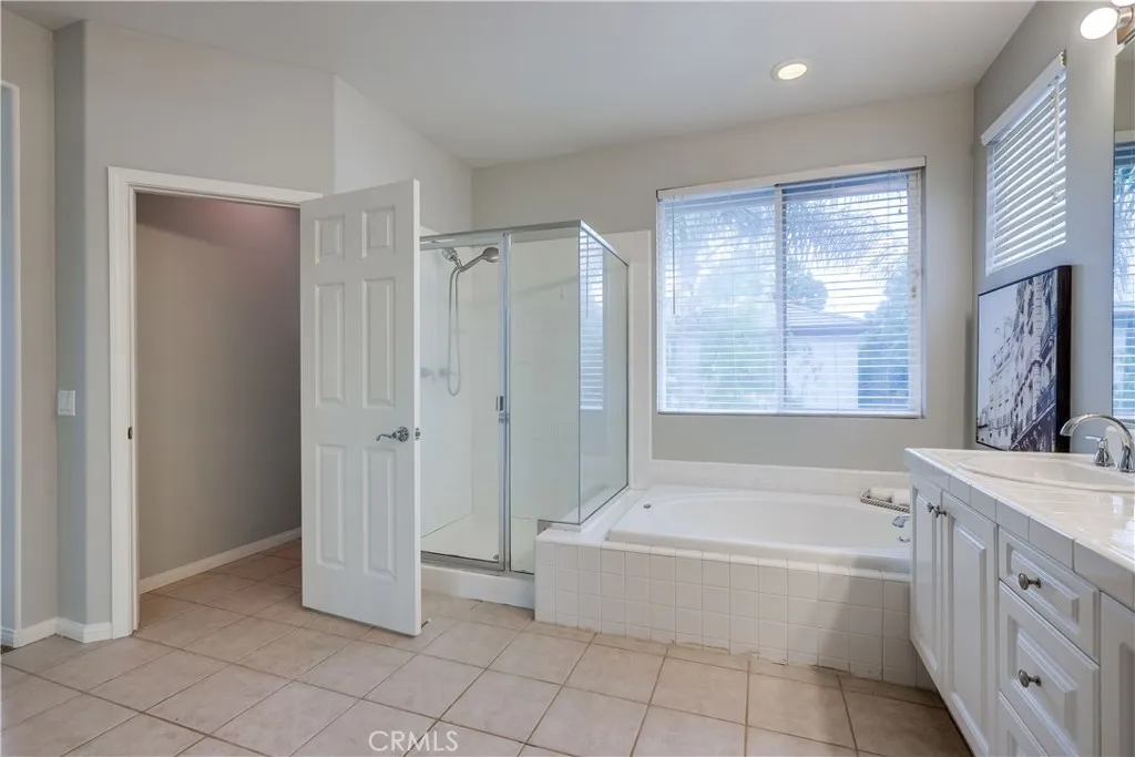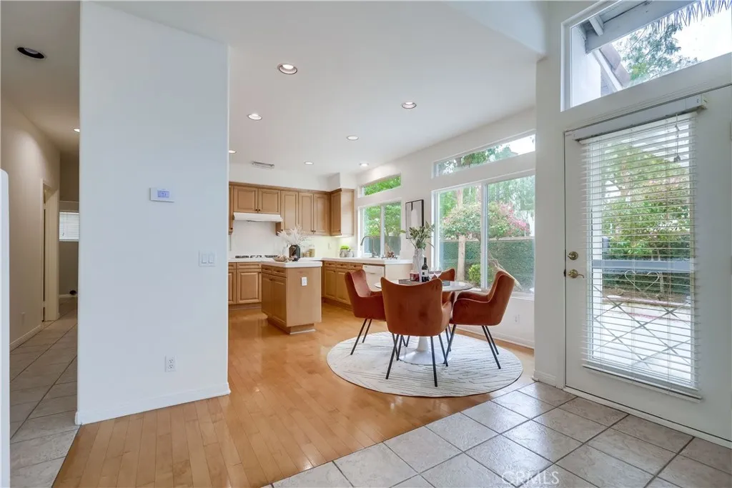 Welcome to this beautifully maintained Oakhurst Plan Two home, nestled in the exclusive 24-hour guard-gated community of Northwood Pointe. Built in 1997, this 4-bedroom, 3-bathroom residence offers 2,230 sqft of well-designed living space on a 4000 sqft lot, with a desirable interior location. A double-door entry opens to soaring two-story ceilings in the formal living and dining rooms, creating a bright and elegant ambiance. The functional layout features one bedroom and a full bathroom on the main floor, making it perfect for guests or multi-generational living. The spacious family room features a cozy fireplace and built-in entertainment center, flowing seamlessly into the kitchen with a center island, breakfast nook, and abundant cabinetry. Upstairs, the primary suite boasts a walk-in closet and plenty of natural light. Additional highlights include ceramic tile and hardwood floors, custom paint, and a rare three-car garage. The professionally landscaped yard boasts impressive curb appeal and a private outdoor space perfect for relaxation or entertaining. Located within walking distance to top-rated schoolsCanyon View Elementary, Sierra Vista Middle, and Northwood High