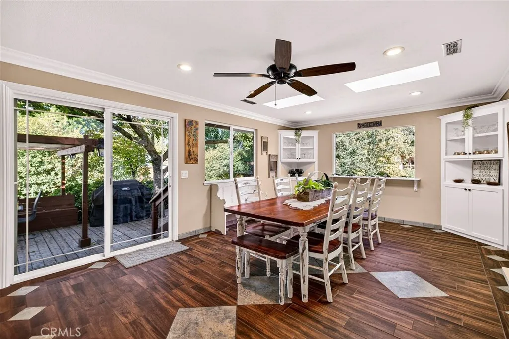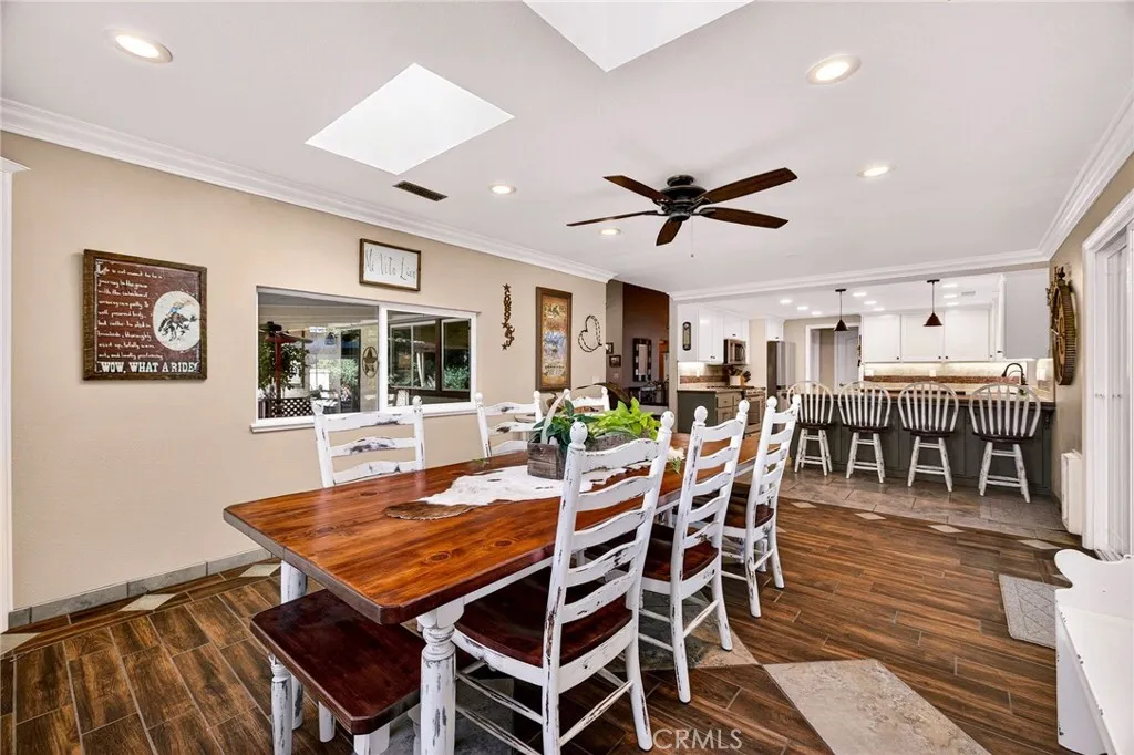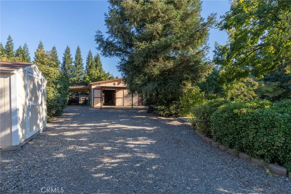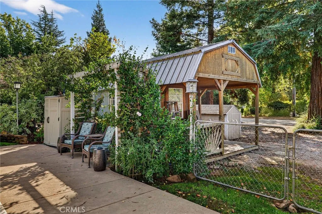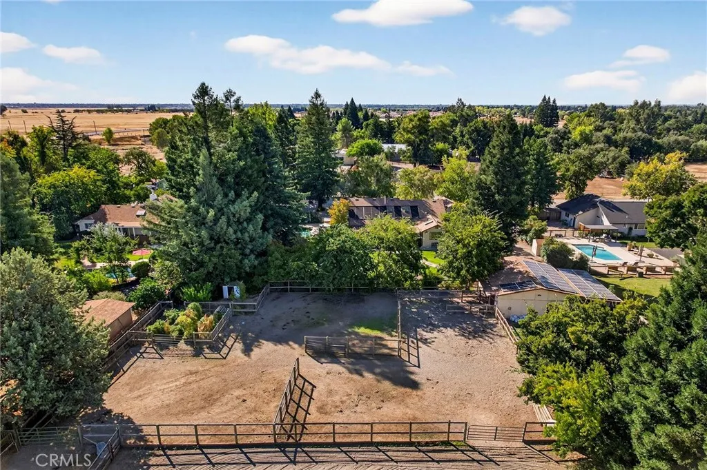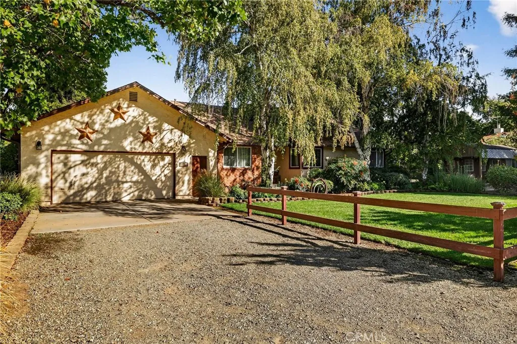 Tucked in the countryside just minutes from town, Roseanna Ranch is where modern comfort meets peaceful country living. This stunning 2.04-acre property has been lovingly renovated and designed for those who dream of wide-open spaces, horses in the pasture, and sunsets over the arena. The beautifully remodeled farmhouse spans approximately 2,100 sq. ft. with 4 bedrooms and 2 bathrooms, offering the perfect blend of rustic charm and modern sophistication. Inside, Italian tile flows throughout the main living spaces, luxury vinyl plank flooring accents the bedrooms, and custom wood flooring adds character to the first floor. The spacious living room features a vaulted knotty pine ceiling with skylights that fill the home with natural light, while an efficient Heat Tech wood stove adds cozy ambiance. The kitchen is a showpiece with quartz/Cambria countertops, stainless steel appliances (new in 2019 & 2023), a garden bay window, and a dining room addition with skylights and built-in china cabinets. The primary suite includes a walk-in shower, a walk-in closet, and elegant finishes. Updates include new doors and windows, crown molding, a whole-house vacuum, fan, Culligan water softener, filtration system, and a new HVAC unit. Step outside and fall in love with the fully fenced and gated acreage, featuring manicured lawns, redwood, birch, crepe myrtle, and maple trees surrounded by colorful perennials and blooming roses. A solar-heated pool with a large patio area provides the perfect setting for entertaining, while raised garden beds and a fenced orchard offer a touch of farm-to