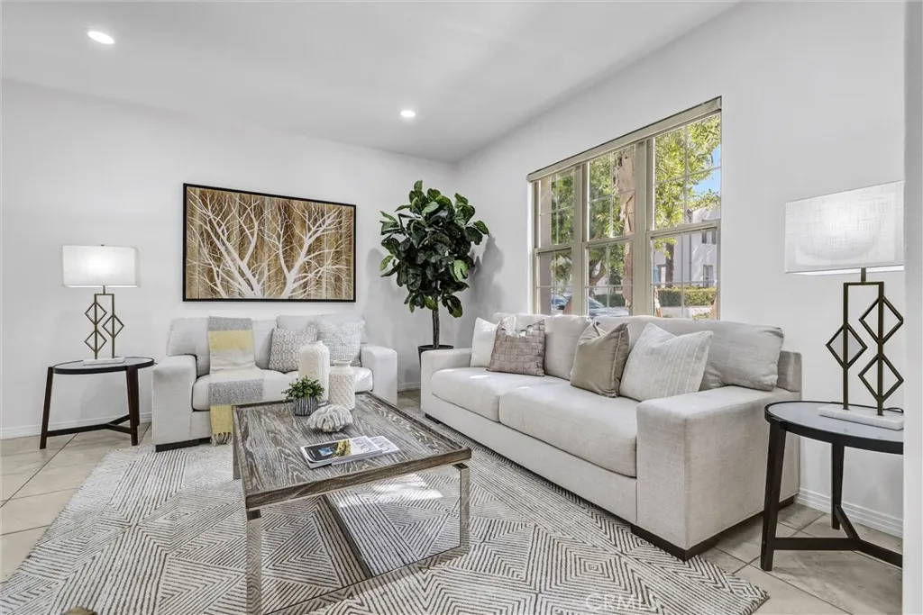 LOCATION, LOCATION, LOCATION! WELCOME HOME TO ONE OF THE BEST LOCATION OF COMMUNITY IN WOODBURY NEIGHBOHOOD. THIS FRESHLY PAINTED STAGED BEAUTY HAS IT ALL. AS YOU ENTER THE HOME THE INVITING GOOD SIZE LIVING ROOM AND ROMANTIC FIREPLACE WILL WELCOME YOU! THE FORMAL DINING AREA ACROSS FROM THE LIVING ROOM IS GREAT FOR ENTERTAINING GUESTS WITH AN ATTACHED PATIO. HUGE KITCHEN WITH STAINLESS APPLIANCESS AND WATER FILTRATION FOR DRINKING WATER. THE PATIO OFF OF THE KITCHEN IS PERFECT FOR ENJOYING YOUR COFFEE EVERY MORNING! THE CONVINIENT BEDROOM DOWN STAIRS WITH A FULL BATH IS PERFECT TO USE IT AS AN OFFICE OR FOR IN LAWS AND GUESTS. AS YOU GO UPSTAIRS THE LOFT AREA IS GREAT TO SET UP FOR A DESK OR LIBRARY. THE SECONDARY BEDROOM UPSTAIRS HAS ITS OWN BATH. THE LAUNDRY ROOM IS ALSO UPSTAIRS WITH THE DRYER INCLUDED. PRIMARY BEDROOM IS VERY GOOD SIZE WITH TWO VANITIES AND ROMAN TUB PERFECT FOR RELAXING AFTER WORK. THIS HOME ALSO IS SET UP FOR SECURITY SYSTEM AND THE GARAGE HAS A NEWER QUIET MOTOR. THIS UNIT IS ACROSS FROM THE PLAY GROUND AND SHORT DISTANCE TO GREAT SCHOOLS, SHOPPING CENTER AND FREEWAY. WHAT A FANTASTIC PLACE TO CALL HOME!