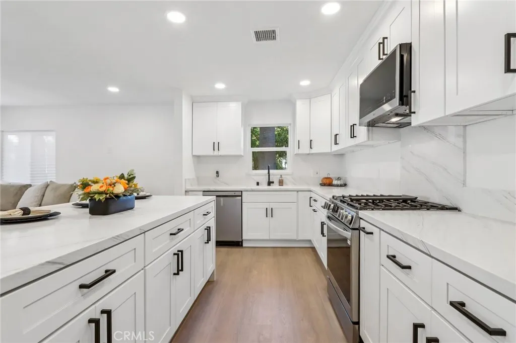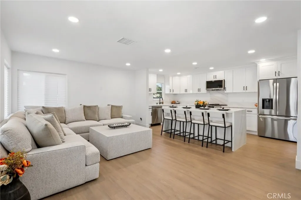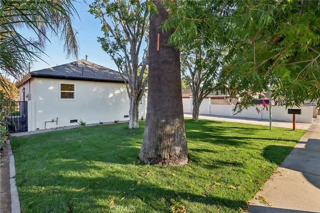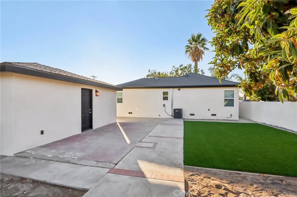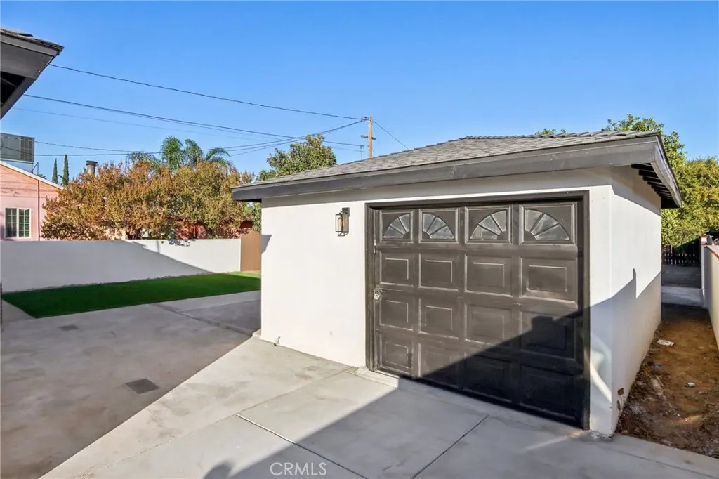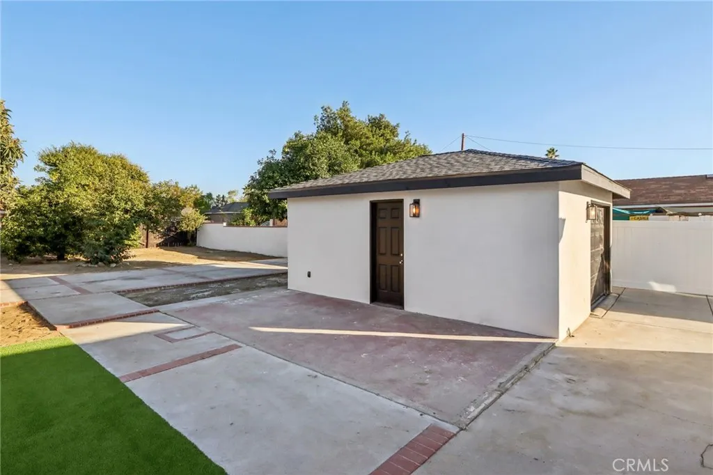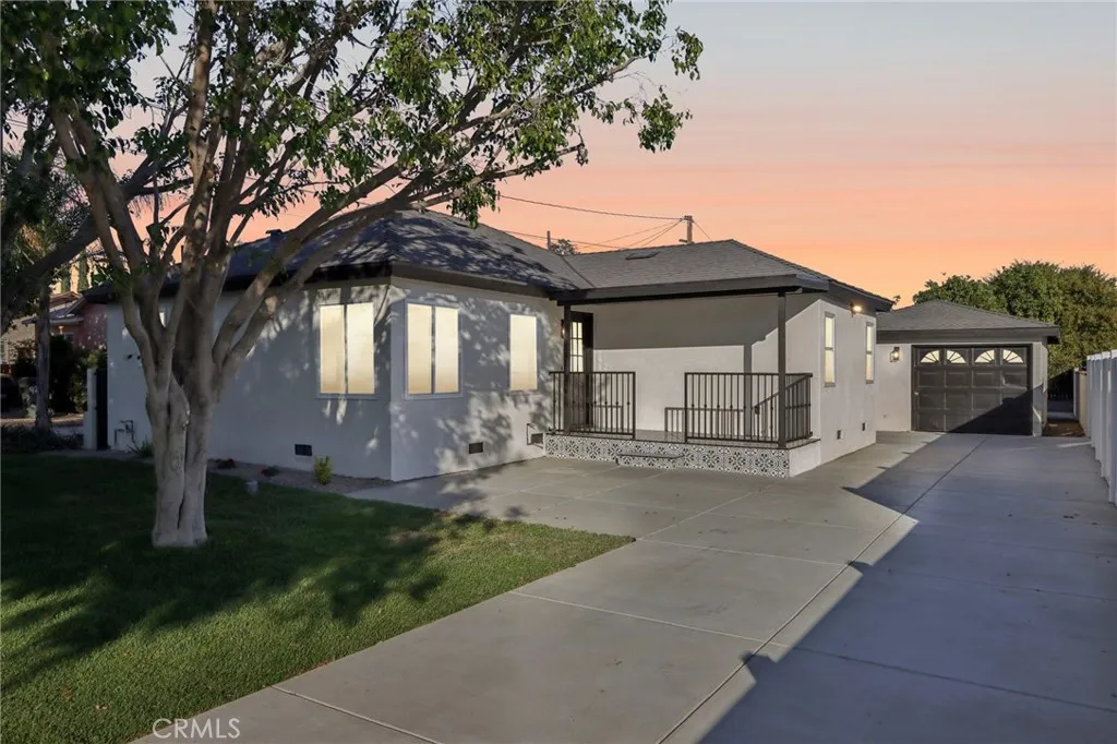 Welcome to Casa Juniper a new redesigned version that brings the best potential of this property. This 2 bedroom and 1 bathroom home was recently transformed into a beautiful, upgraded home inside and out. The complete house has new laminate flooring and 5 baseboard. Each bedrooms have a ceiling fan and 4 ceiling lights. The new redesigned kitchen opens up more space for those family gatherings around the new waterfall kitchen island. The family room has plenty of lighting and is a great area to enjoy and have easy access to the kitchen and front door. Right next to the kitchen you have the laundry room which can be kept private by closing the folding door. There is a back door to the backyard with direct access to the laundry room and kitchen. The bathroom was totally renovated with upgraded rain shower and sprayer featuring resort like features such as smart mirror with lighting and blue tooth speakers to pair with your smart phone or iPad. The property has all new retrofit windows and new interior and exterior doors. The new redesigned front yard has a new concrete driveway and easy access to the backyard. The front yard has new grass and recently trimmed trees. The one car detached garage is completely finished with ceiling lighting and epoxy. The property has new vinyl fencing in the front yard and block wall on the sides. The new side gate can easily grant access to park more vehicles inside the property. There are several fruit trees inside the property. The backyard has plenty of space for family gatherings and relaxing outdoor activities. Come see this home its a g