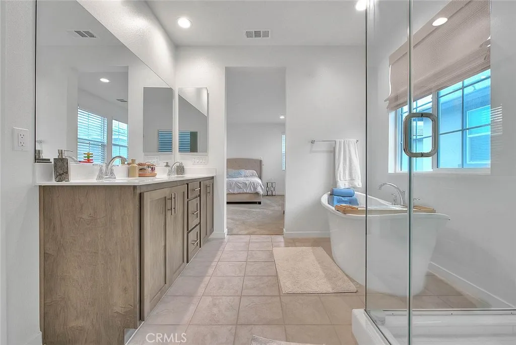 Discover your dream retreat in this beautifully designed and meticulously maintained residence. Built in 2022, this dazzling 2 story home features 3 bedrooms, 3 bathrooms, with almost 2,000 square-foot of living space. As you enter, the foyer leads you into a bright, open-concept living space that seamlessly blends the living, dining, and kitchen areas, creating an inviting atmosphere for both everyday living and entertaining. Directly on the main floor, youll find a cozy bedroom with a full bath. The modern kitchen is a chef's paradise, equipped with stainless steel appliances, granite countertops, ample cabinet space, and a pantry. The island with a breakfast nook adds a casual dining option for those busy mornings. Upstairs living includes an owners suite a true sanctuary featuring a spacious walk-in closet and an ensuite bathroom complete with double vanities and a soaking tub. The loft upstairs can be converted to the 4th bedroom. An additional generously sized bedroom and a well-appointed bathroom ensure comfort for family or guests. The versatile loft space is perfect for a home office, entertainment room, or creative area. Situated in the heart of Ontario Ranch, this home beautifully balances suburban tranquility with urban convenience, offering easy access to shops, restaurants, and major freeways (60 and 15). Dont miss this incredible opportunity to live in comfort and style while investing in your future! Get the full experience of this property in person today!