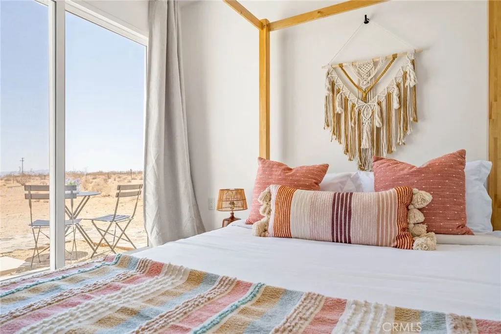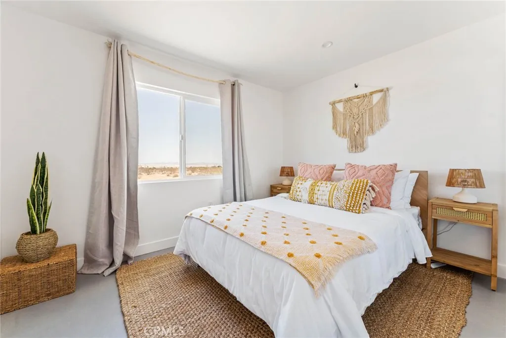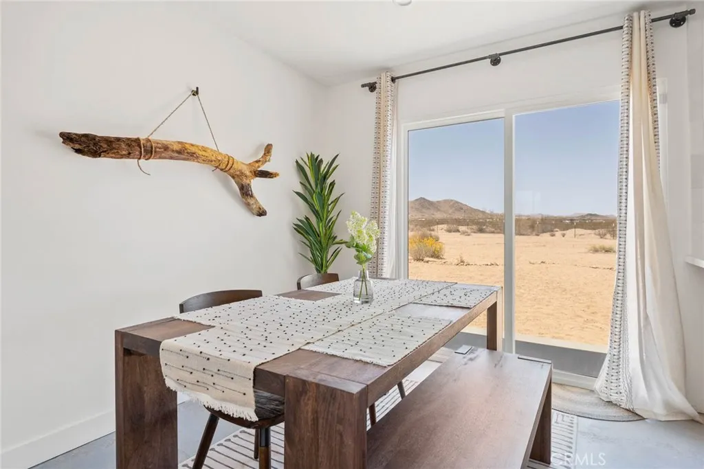 Exquisite remodeled home to the highest standard: Santa Barbara smooth stucco, floor-to-ceiling custom tile in the bathroom and counter-to-ceiling tile in the kitchen. Quartz countertops and solid oak cabinets throughout. FULLY FURNISHED/TURNKEY furnishings, art and design setup is complete and ready to move-in or rent. No stone left unturned, inside or out, including recently upgraded 200-amp electrical panel, septic tank, AC/Heating, roof, EV charger, fenced, tiled carport that doubles as a custom porch the works! Hot tub. Great getaway vacation home, Airbnb or even a primary residence in perfect condition! Sublime, rural location on the border of Joshua Tree and Landers, with easy access to both, but at a location like this, you can hike right out the front door into surrounding wilderness or relax and stargaze surrounded by peaceful desert in all directions. Seller will provide Buyer with detailed instructions on running the Airbnb which has all been automated; Seller also has reliable vendors in place for cleaning, pool, etc., and will provide those contacts. These established automated systems and contacts help make monitoring and maintaining the home from a distance a breeze for any vacation home buyer/manager.