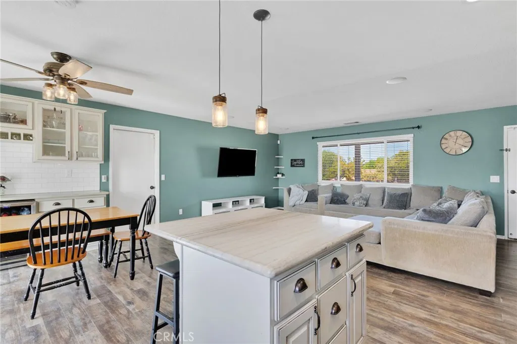 Welcome to this charming, commuter-friendly home in Victorvillewhere modern upgrades meet comfortable living, and a motivated seller makes this opportunity even sweeter! This beautifully maintained 3-bedroom, 2-bath residence offers an inviting open floor plan with thoughtful touches throughout. The upgraded kitchen is a true showstopper, featuring stunning cabinetry, quartz countertops, a spacious center island, and stainless-steel appliances that are included with the home. The kitchen flows seamlessly into the living room, making it perfect for entertaining and everyday living. Enjoy movie nights with easethe living room is wired for 5.1 surround sound, and a built-in wine cooler adds a touch of sophistication. Both bathrooms are nicely updated, and laminate flooring throughout provides style and easy maintenance. Step outside to an entertainers backyard designed for relaxation and fun! The deck is wired for speakers, internet, and cable, and includes built-in drainagecreating the ideal space for gatherings. The garage is set up for two televisions, making it a great hangout or workshop area. A backyard shed with water and electricity adds extra versatility and storage. This home also includes an assumable solar lease with Sun Run to help keep energy costs low. Conveniently located near major commuter routes, shopping, dining, and schools, this Victorville gem is move-in ready. Seller is motivated and every offer will be considereddont miss your chance to make this home yours!