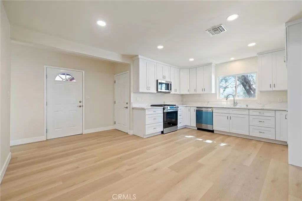Tastefully upgraded, this lovely home is equipped with all the desired amenities that todays buyers are looking for. This three-bedroom, two-bath layout features a spacious primary bedroom set apart from the other two bedrooms, with interior space totaling approximately 1,339 sq ft and a large backyard of about 8,024 sq ft that awaits your personal touch on a clean canvas. The living room centers around a stunning fireplace. A new room addition adds 300 sq ft to the primary suite and bath, along with a 450 sq ft attached garage. Inside, youll find new cabinets and quartz countertops in the kitchen and bathrooms, 6-panel interior and closet doors, a full suite of stainless steel appliances, and new Conrad composite flooring throughout. The fireplace receives a new stone veneer and travertine hearth, all interior walls, ceilings, and trim are freshly painted, and the home boasts a brand-new main electrical panel with updated wiring, outlets, switches, and light fixtures. Plumbing has been fully updated with ABS drains, copper and PEX hot and cold lines, and modern fixtures in kitchens and baths. A new HVAC system with an AC heat pump, ducting, and vents ensures comfort year-round, and windows have been installed in all bedrooms, bathrooms, kitchen, and garage. Safety and convenience are enhanced with hard-wired, interconnected smoke and CO/smoke detectors. The attic is clean and insulated with new R-30 fiberglass batt, and the 450 sq ft attached garage includes water, drain, gas, electrical, and a vent suitable for a washer and dryer near the water heater. Outdoor living is e
