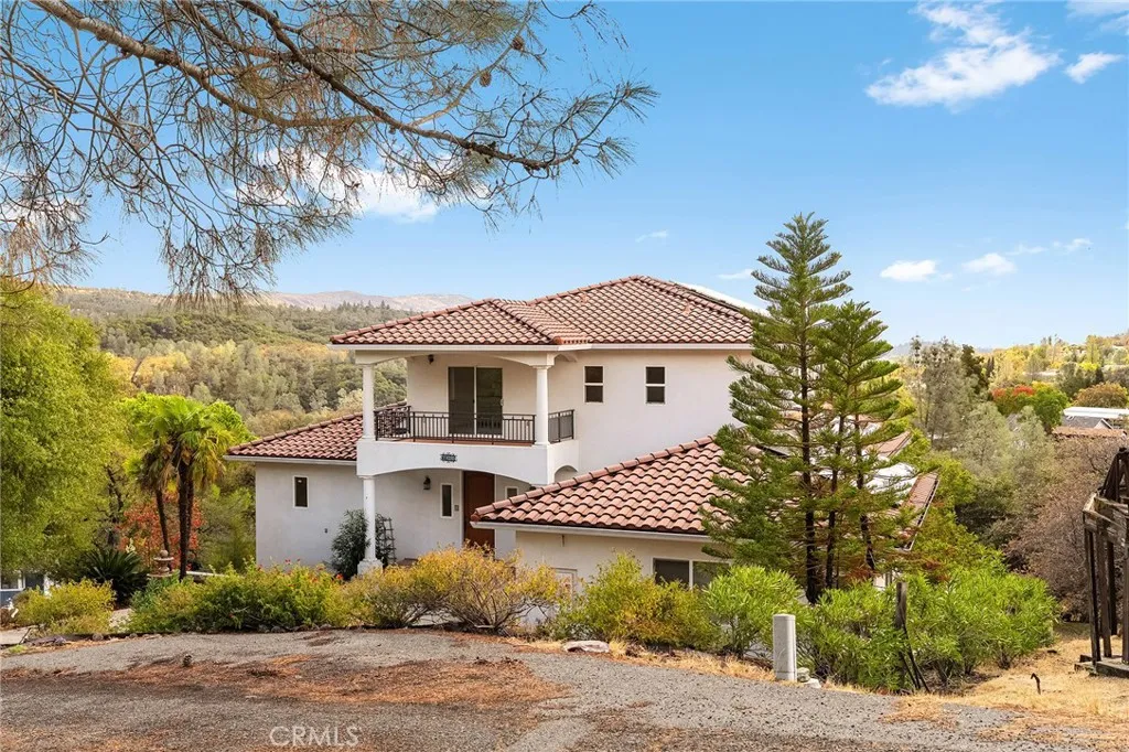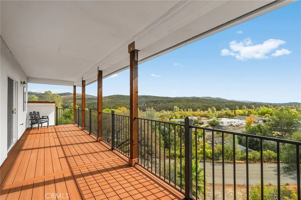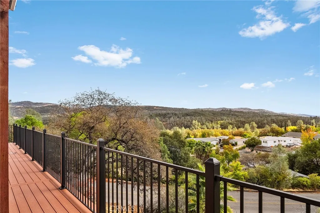 Welcome to this stunning custom-built home perfectly perched to capture serene views of the surrounding hills and Lake Oroville. Thoughtfully designed across three spacious levels, this property offers a versatile layout ideal for multi-generational living, guests, or anyone seeking both comfort and functionality. Enter on the main level, where the open-concept living, dining, and kitchen areas flow beautifully together for easy entertaining. The living room features a cozy gas fireplace, creating the perfect spot to gather and enjoy peaceful evenings or crisp winter mornings. Enjoy the convenience of direct garage access for effortless unloading, plus a guest half bath and a full laundry room. This level also features one of two primary suites complete with its own en suite bathroom, wet bar, and kitchenetteperfect for extended family or guests. Step out onto the expansive rear deck to take in the peaceful views of the hills and lakeaccessible from both the living area and primary suite. Upstairs, youll find two generously sized bedrooms, each with balcony access overlooking the back. A full bathroom offers dual sinks, a walk-in shower, and a private toilet room. A bright loft space adds flexibility for a reading nook, office, or play area and has an additional balcony facing the front. The lower level features a second primary suite with its own private entry, making it ideal for guests, in-laws, or even rental potential. On the opposite side, youll find a finished workshop with a full bathready to serve as a hobby space, studio, or home gym. Set on nearly half an acre, t