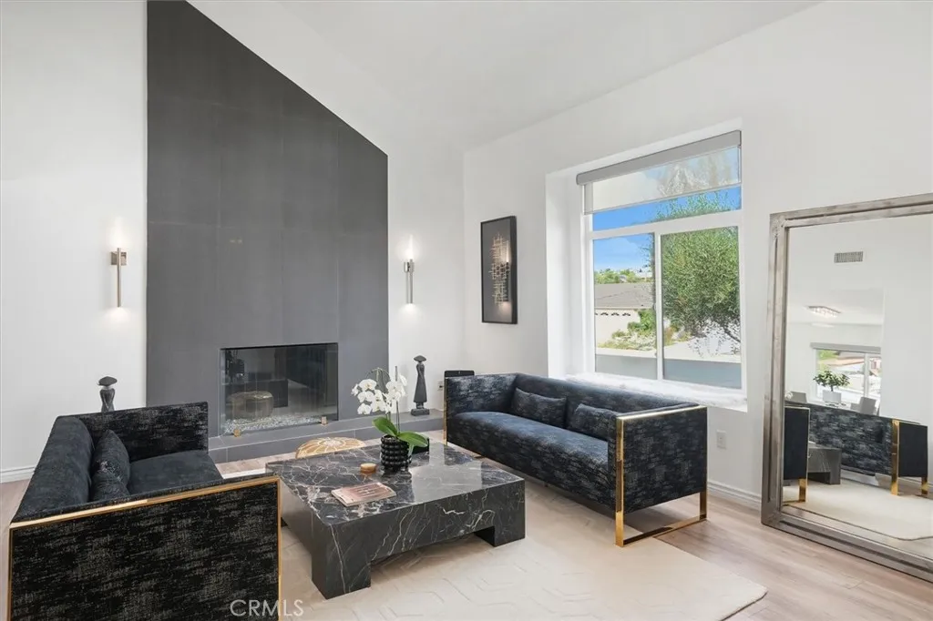 Mid-century Modern, meets West-LA, and dances with the additional luxury of nearly 1/4 acre of Rancho Mirage grounds with this extraordinary, unique, property. Rare: NO HOA or suffering Mello-Roos. Brilliantly remodeled in the highest of upscale taste: Kitchen, every bath, bedroom, living space upgraded to beyond contemporary. The photos tell a thousand wordsFrom thermo-reflective exterior paint, and highly UV reflective interior shades, to insurance and drought friendly grounds the Drone photos alone recognize the privacy of the enormous entertainers pool, spa, built in BBQ, 3 cabanas and a meandering up-slope path to the view deck of the property. The chic interior welcomes, with a customized living room and fireplace that should be in Modern Design. Next, a kitchen like none other. Every efficient luxury appliance. The family room views out to the resort grounds. Family and guests can retreat to a full private downstairs bath and bedroom suite, with additional nearby hall closets. Upstairs hosts every contemporary remodeled upgrade wow as well. Especially the baths and closets. The primary suite is done with beyond exquisite taste.