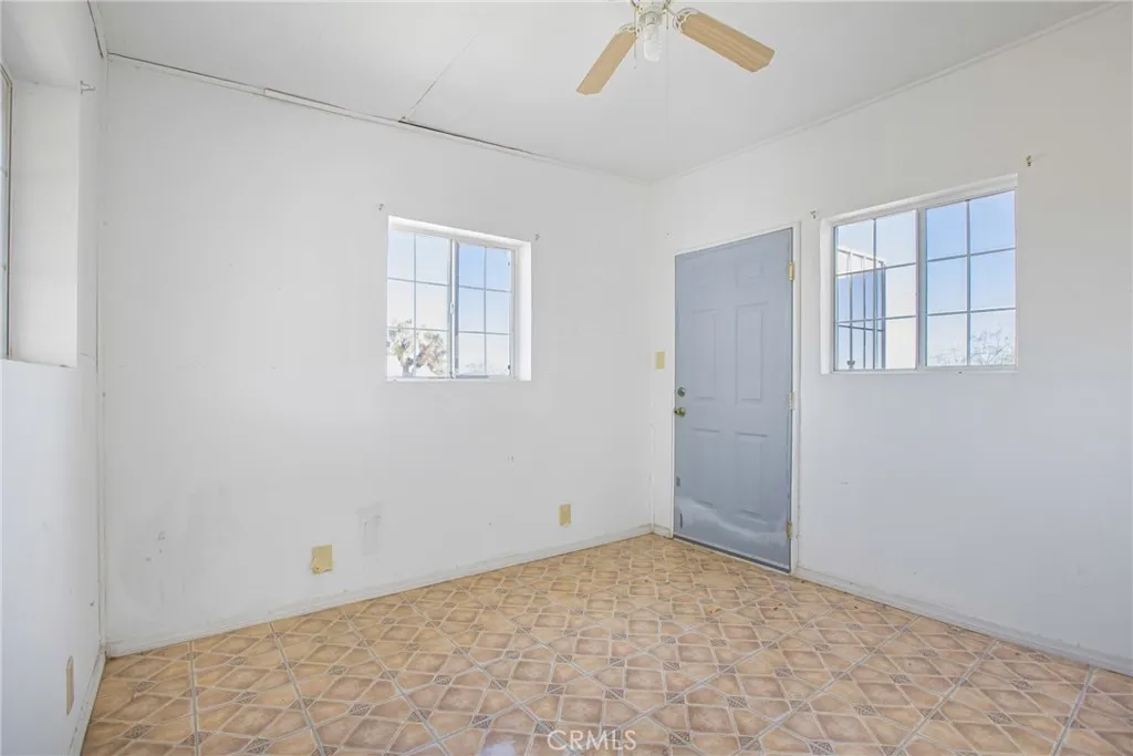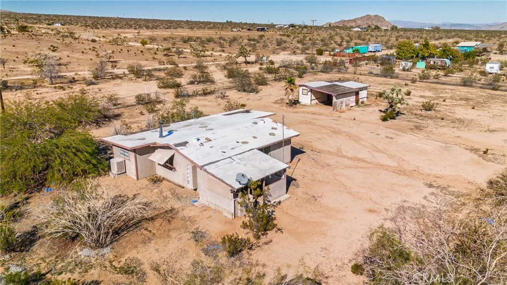 Endless potential on 2.5 acres of flat, usable land! Welcome to 55525 Ornelas Ln in Landers! This 1-bedroom, 1-bath home offers approximately 1,085 sq. ft. of living space (965 sq. ft. per assessor) on a spacious 2.5-acre lot. Features include a large bonus room that could be converted into additional bedrooms, a cozy family room, small kitchen with dining area, enclosed porch, and covered front porch. Detached covered carport includes a small office and storage room. All-electric home with public waterno propane needed. Home needs some updating and repairs but offers great potential as a desert getaway or full-time residence. Zoned HV/SD-RES, allowing for single-family use and potential accessory structures. Conveniently located near Joshua Tree and Yucca Valley. Buyer and buyers agent to verify all information, including permits, additions, square footage, zoning, and property use to satisfy themselves.