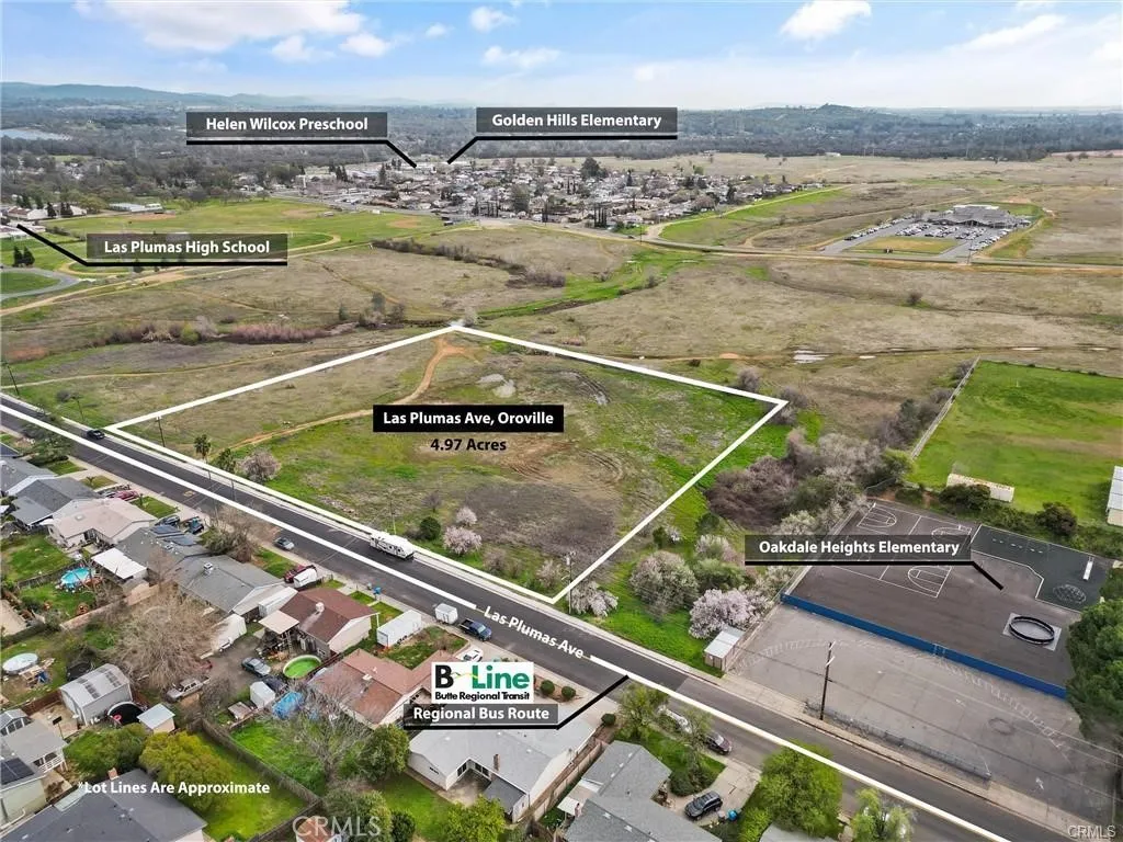 OWNER MAY FINANCE! Land Development Potential Prime MDR-Zoned 4.97+/- Acres in the Path of Growth Dont miss this rare opportunity to secure nearly 5 acres of land perfectly positioned in the path of ongoing development. Zoned MDR (Medium Density Residential), this property allows a minimum of 6,000+ sq. ft. residential building lots and supports a range of housing types including single-family homes, duplexes, and second units. All essential utilitiespower, sewer, water, phone, and internetare conveniently located at the street and ready to connect, making this an excellent candidate for a new residential subdivision or community project. The location is unbeatable, situated directly next to Oakdale Heights Elementary School, just a parcel away from Las Plumas High School, and within close proximity to Golden Hills Elementary and Helen Wilcox Preschool. The land itself is mostly flat with a gentle roll, offering easy development potential. Its also located along the B-Line public bus route, providing convenient transportation access. Nearby, ground has already broken on a new housing development, further highlighting the growth and opportunity in this area. MDR zoning supports medium-density residential living while also allowing for various conditional uses such as residential care facilities, daycare centers, clinics, community centers, schools (public or private), and small-scale retail or professional offices. The maximum permitted residential density is six dwelling units per acre. With its prime location, available utilities, and flexible zoning, this property offers
