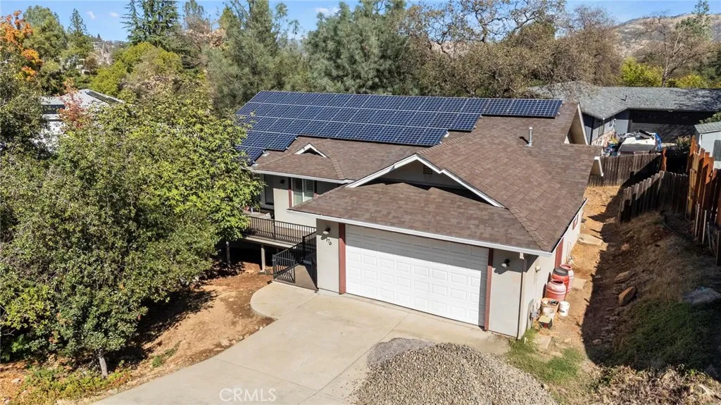 Welcome to your dream retreat where comfort, efficiency, and natural beauty come together in perfect harmony. This stunning 3-bedroom, 2-bath home offers 1,757 square feet of thoughtfully designed living space on a spacious 0.18-acre lot, built in 2008 with modern living in mind. Step inside to an inviting open floor plan filled with natural light, thanks to dual-paned windows, recessed lighting, and ceiling fans throughout. The living room flows seamlessly into both the dining area and kitchen, perfect for entertaining or cozy nights in. Home chefs will love the granite countertops, pantry, and breakfast bar ideal for casual meals or morning coffee. The primary suite is your personal haven with a spacious layout, walk-in shower, and peaceful ambiance. Enjoy seamless indoor-outdoor living with French doors leading to a beautiful decking area, ready for summer BBQs, lounging under the stars, or relaxing with your favorite book. Whether you're hosting friends or enjoying a quiet evening, the outdoor space provides the perfect backdrop for memorable moments. Energy-conscious buyers will appreciate the OWNED solar system, central heat & air, whole house fan, and finished garage, all working together for year-round comfort and efficiency. Youll also love the indoor laundry room, keeping chores tucked away yet conveniently accessible. Located in a friendly, well-established neighborhood, you're just minutes from Lake Oroville, the Feather River, bike trails, and parks, making it easy to stay active and connected to nature. Whether youre kayaking at sunrise, biking along scenic p