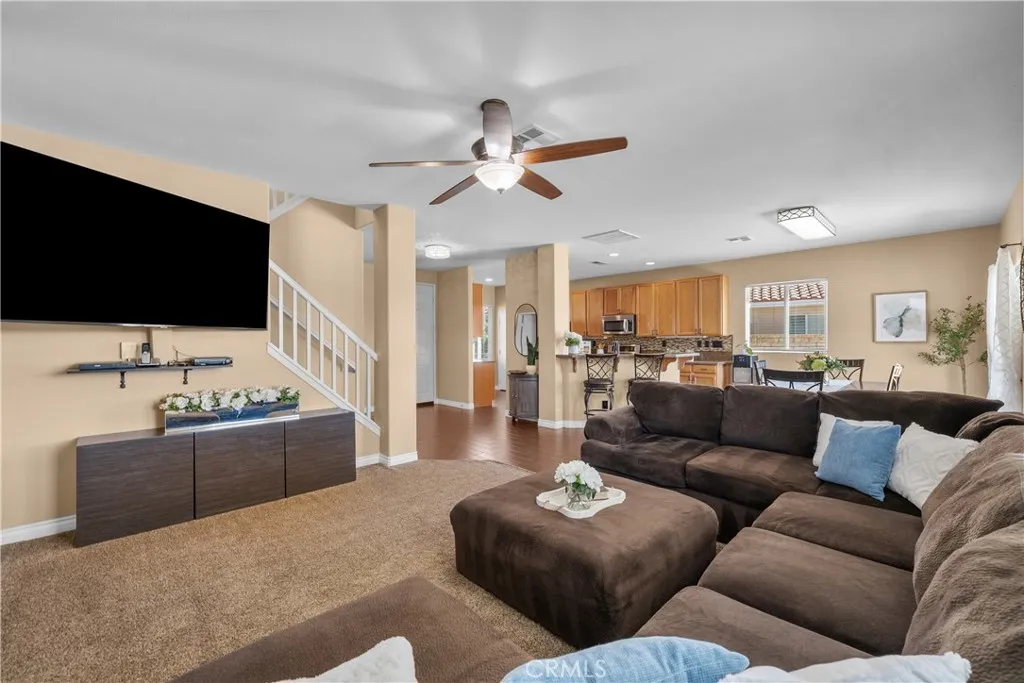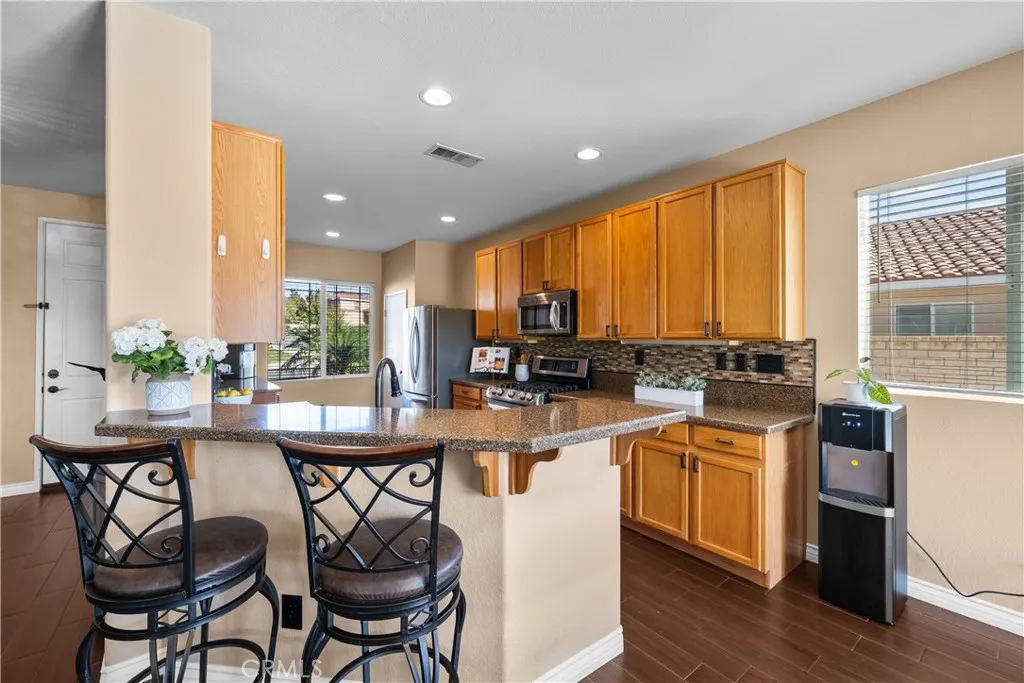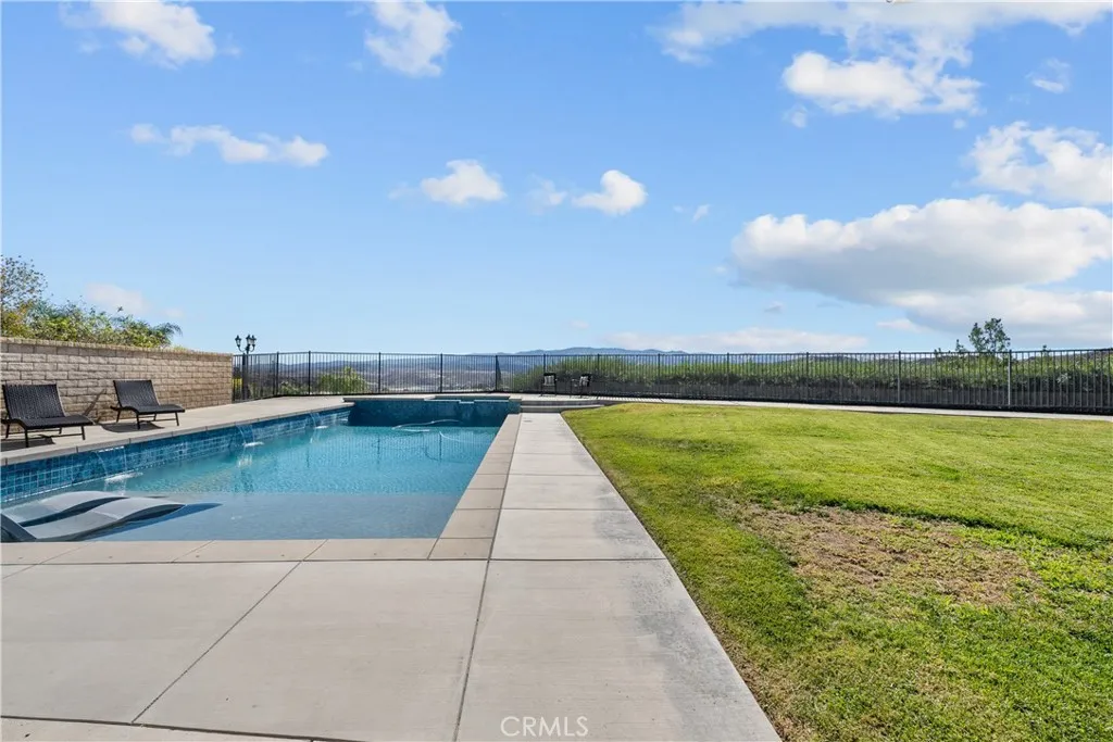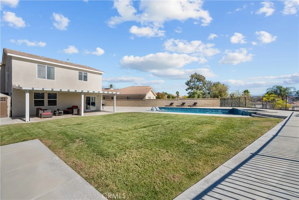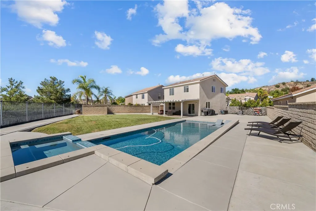 Welcome to your dream home in the desirable Hasley Hills community! This warm 2,247-square-foot residence on a 9,321-square-foot lot located in a cul-de-sac beautifully blends comfort and style. With 4 bedrooms and 2.5 bathrooms, the open-concept layout is perfect for gatherings and everyday living. A large front yard and covered porch create inviting curb appeal. The updated kitchen features granite countertops, a stylish backsplash, stainless steel appliances, and a breakfast bar ideal for morning coffee or casual chats. Tile floors extend through the kitchen and dining room, while plush carpeting in the family room adds warmth, flowing into a cozy family room filled with natural light. Downstairs, a freshly painted powder room adds charm. The separate laundry room includes updated cabinetry, a backsplash, added shelving, and extra counter space for convenience. Upstairs, the primary suite offers an ensuite bath with dual sinks and an updated walk-in closet. Two additional spacious bedrooms feature ceiling fans and mirrored closets, and a versatile fourth bedroom, currently utilized as a home office and theater room, includes a built-in desk, cabinets, shelving, and ample storage. Ceiling fans in all bedrooms and a full bathroom ensure comfort throughout. The backyard is a true showstopper! The expansive lot boasts a stunning pool with a Baja shelf and spa, creating a resort-like oasis perfect for relaxing or entertaining. A covered patio provides the ideal spot to unwind while enjoying breathtaking valley views. The generous grass area invites play and recreation, while