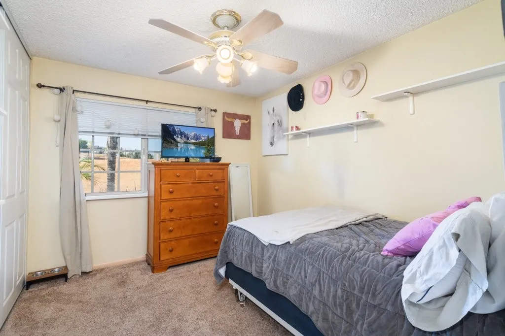 Welcome to this ranch-style home situated on nearly 1.29 acres (56192sqft) flat land that provides endless opportunities whether you envision private retreat, a homestead, multi-generational compound, or an income-producing investment. Step into this warm and inviting living room that blends rustic charm with spacious comfort. Vaulted ceilings with exposed wooden beams create an open, airy feel, while the beautiful stone double-sided fireplace serves as a stunning focal point between living spaces. The dining rooms offers ample space for entertaining and sliding door that leads into the covered patio and sparkling swimming pool. The kitchen offers cabinetry with pull out drawers and bay window with view to the backyard. There are 3 bedrooms (Realist tax states 4, but one bedroom was converted info office) which could easily be converted back to bedroom. Hallway bathroom has been updated with marble stone counter and tiled flooring. The primary suite offers mountain views through the large sliding glass door and two closets. The ensuite has been remolded with subway tiled walk in shower, tile flooring and marble counter tops. Additional features include dual pane windows throughout, AC has been upgrade to 4- Ton, along with new ducting and new heating system. The pool and spa have been redone with pebble tech. The expansive lot provides endless possibilitiesperfect for horses, RV parking, gardening, or adding an ADU. Peaceful semi-rural setting just minutes from modern amenities like shopping, dining, and 91 freeway. Located in county limits. A rare blend of comfort, space,